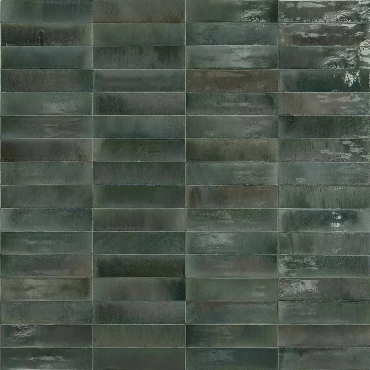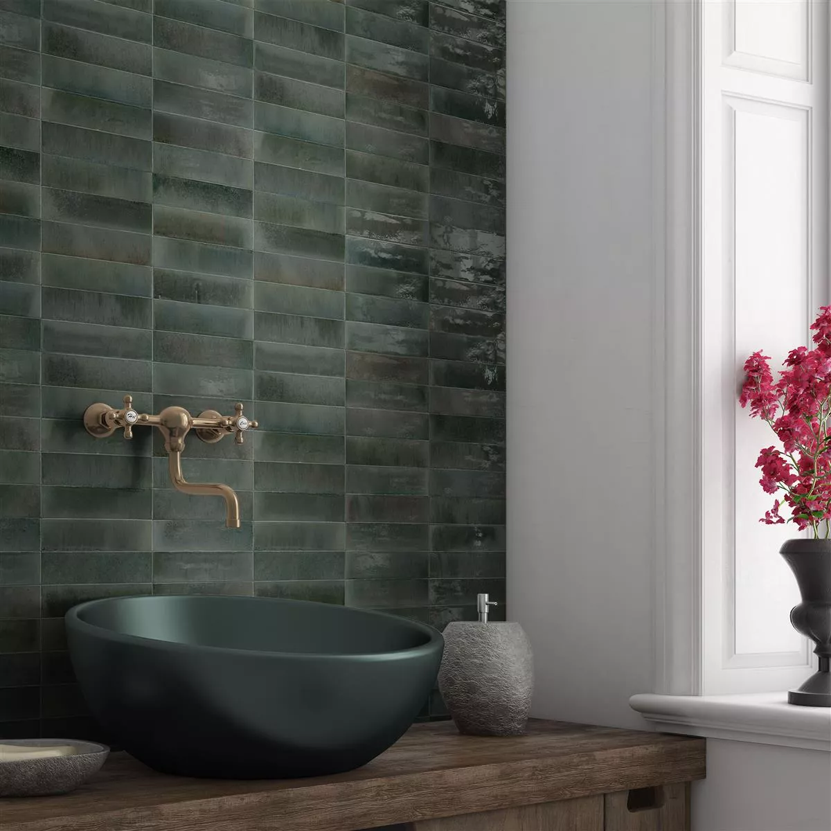Carrelage Mural Laguna Brillant Ondulé Vert Foncé 6x24cm