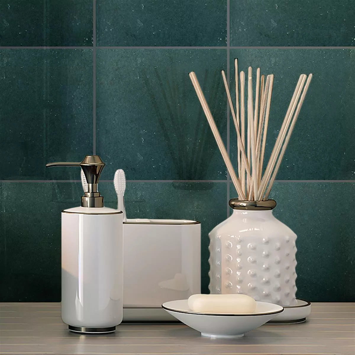 Carrelage Mural Lara Brillant Ondulé 15x15cm Vert