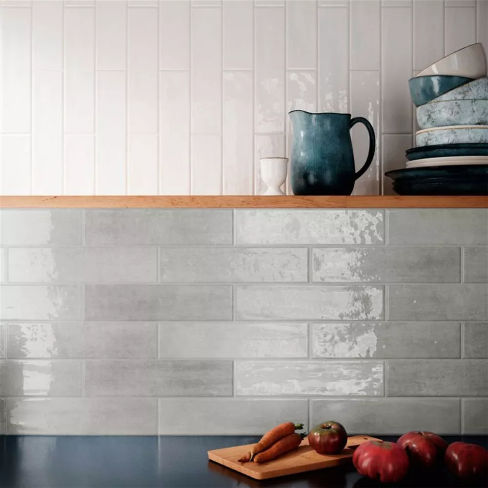 Ces carreaux rectangulaires émaillés mesurant 7,5x30cm et 8,4mm d'épaisseur apportent une esthétique vintage à vos pièces. La surface ondulée et brillante donne à vos murs une dynamique subtile.