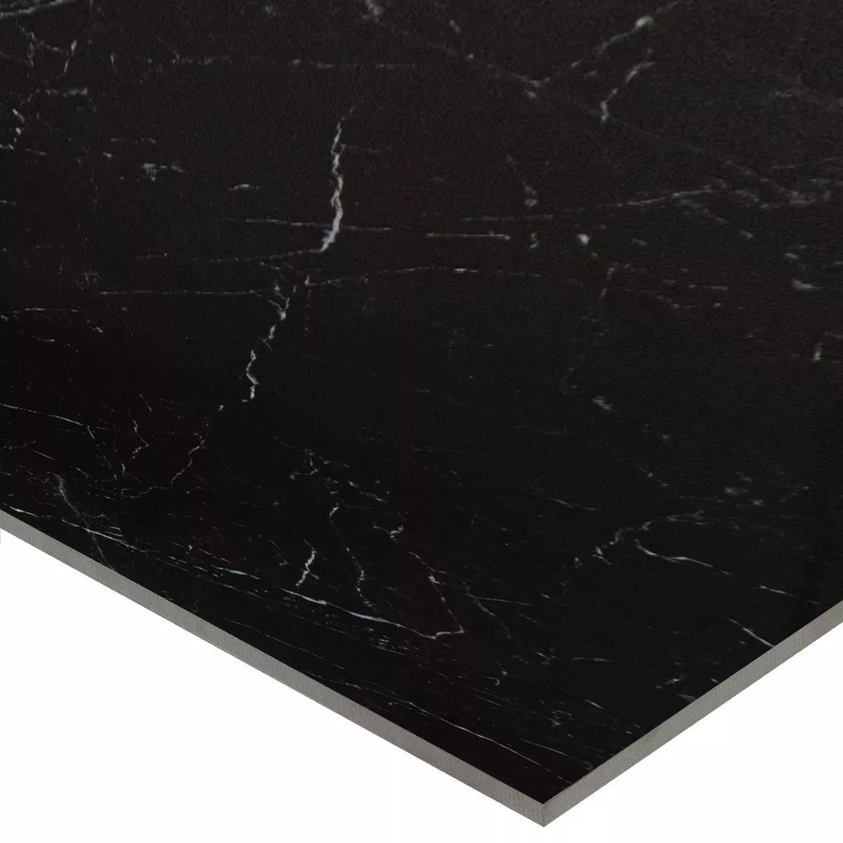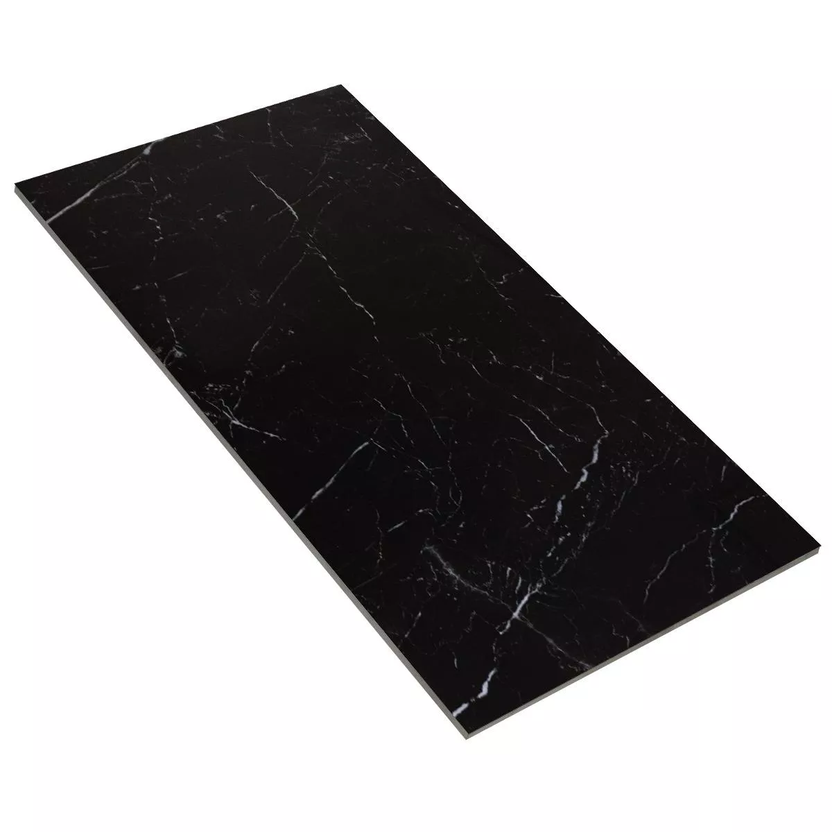Carrelage Sol Et Mur Cardiff Marbre Optique Poli Brillant Noir Blanc 60x120cm
