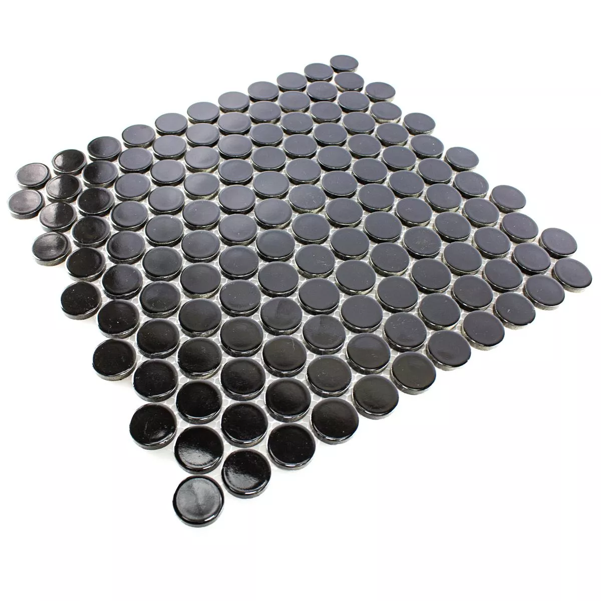 Céramique Bouton Mosaïque Carrelage Harlingen Noir Brillant