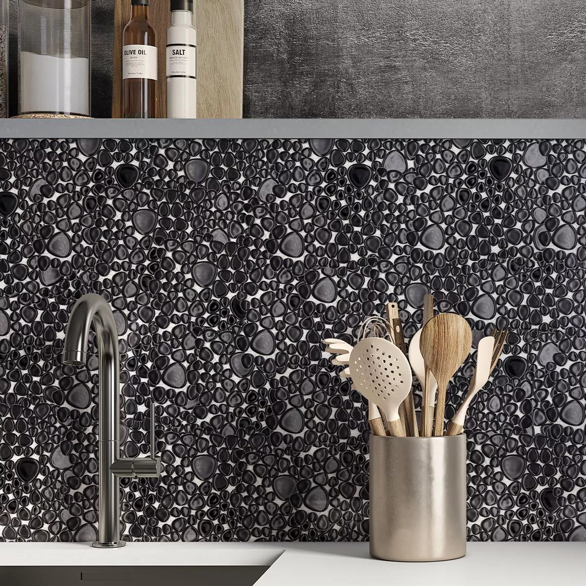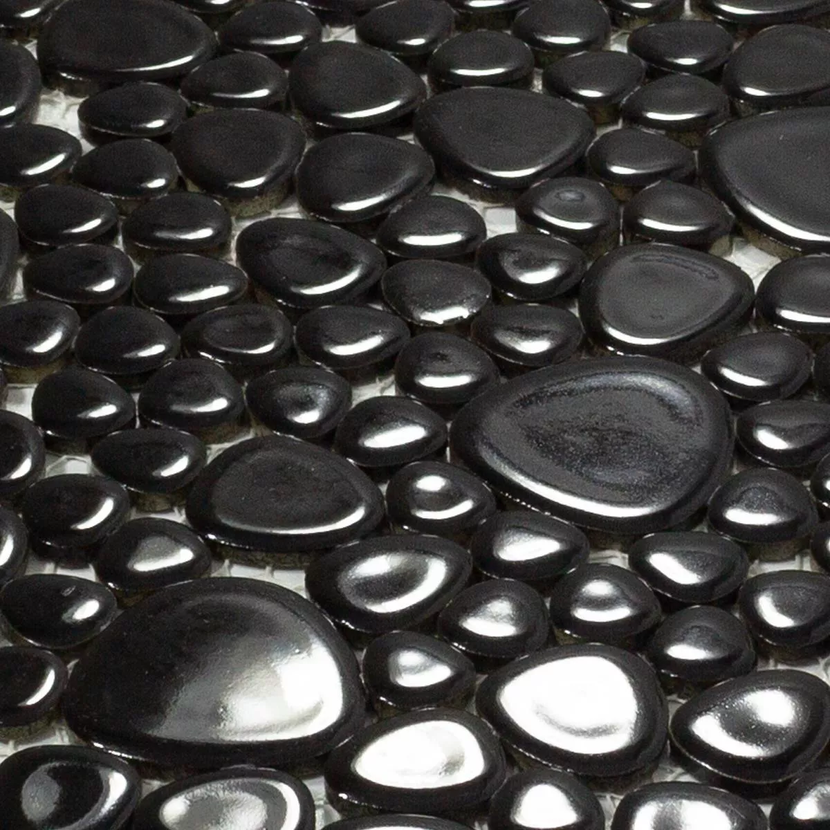 Céramique Galets Mosaïque Sabah Noir Brillant