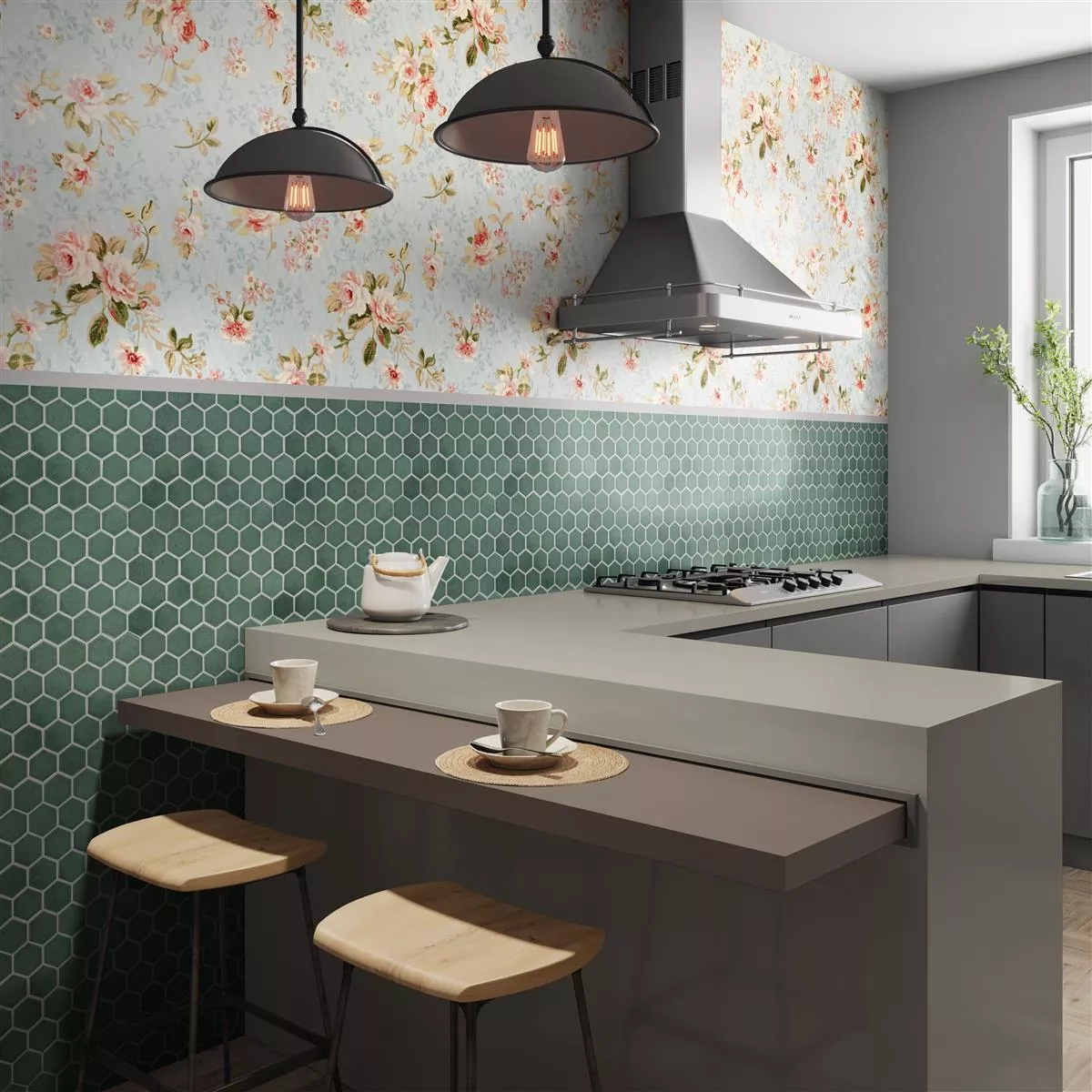 Céramique Mosaïque Carrelage Eldertown Hexagone Vert Foncé
