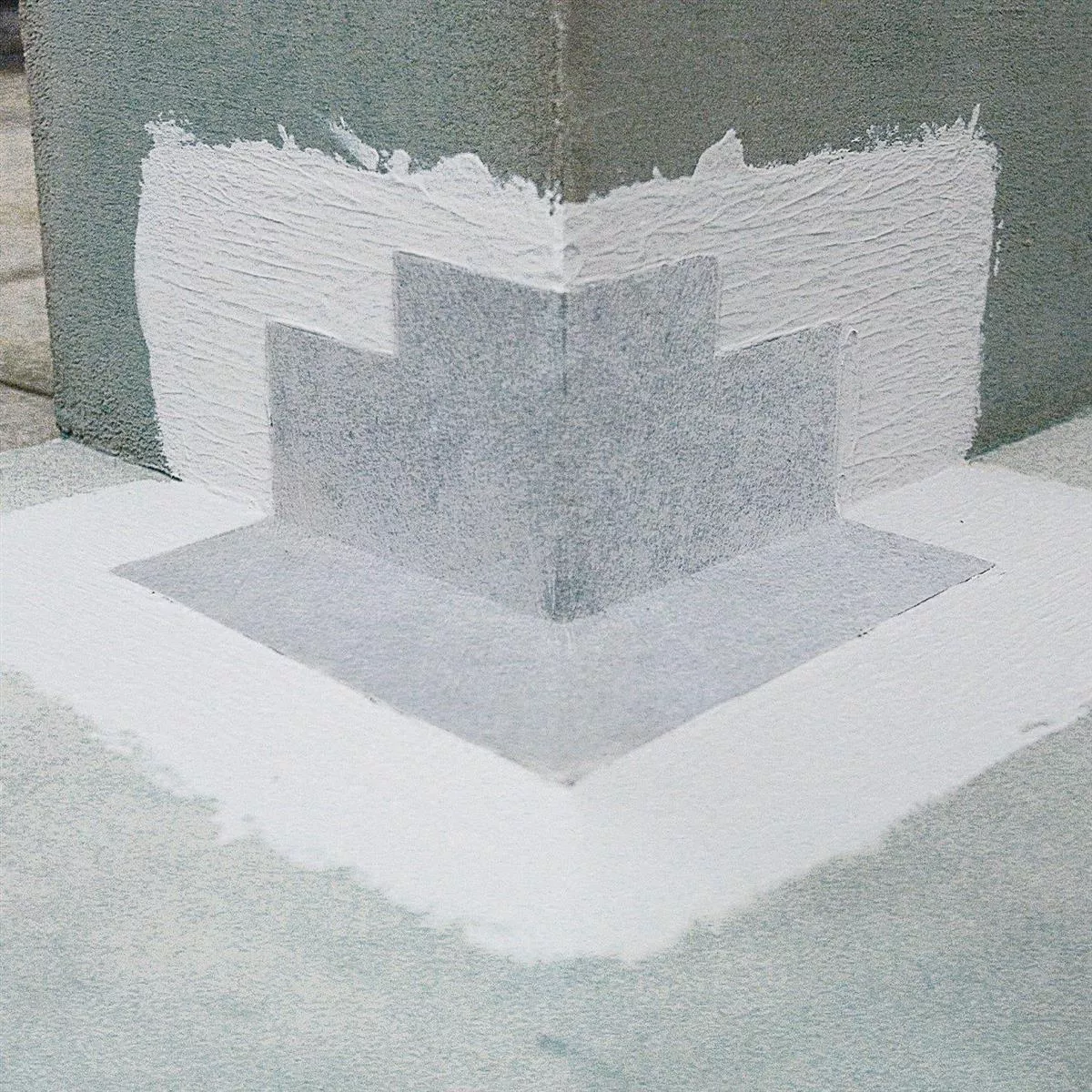 Pour éviter la formation de fissures dans la zone des coins, enfoncez les coins d'étanchéité à l'extérieur dans la première couche fraîche et retravaillez complètement avec la deuxième couche . Notez l'épaisseur minimale de couche du composé d'étanchéité. Les joints de ruban d'étanchéité doivent se chevaucher d'au moins 6 cm. La fiche technique du produit d'étanchéité utilisé doit être respectée.