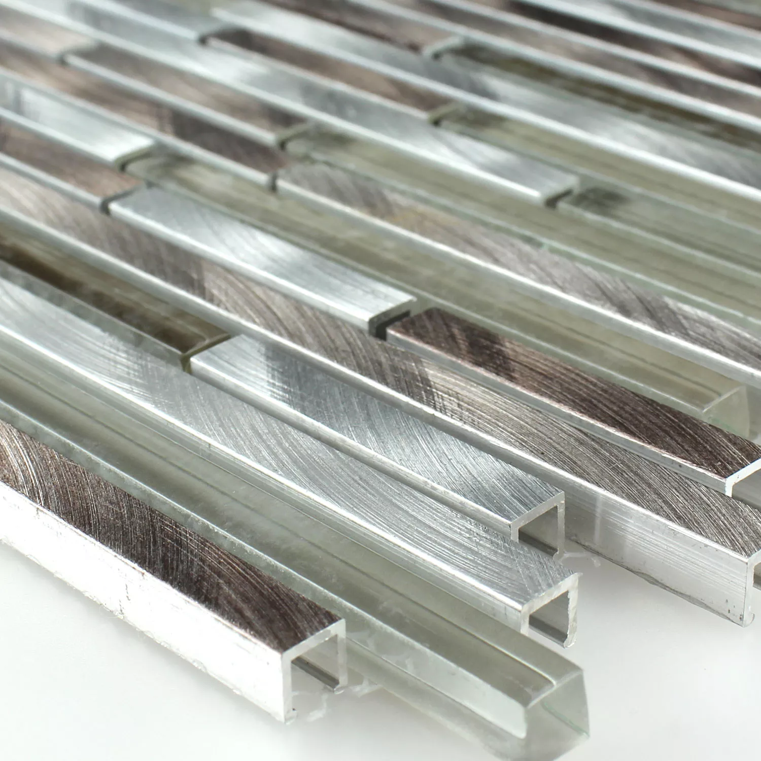 Échantillon Aluminium Verre Metal Mosaïque Brun Argent Mix