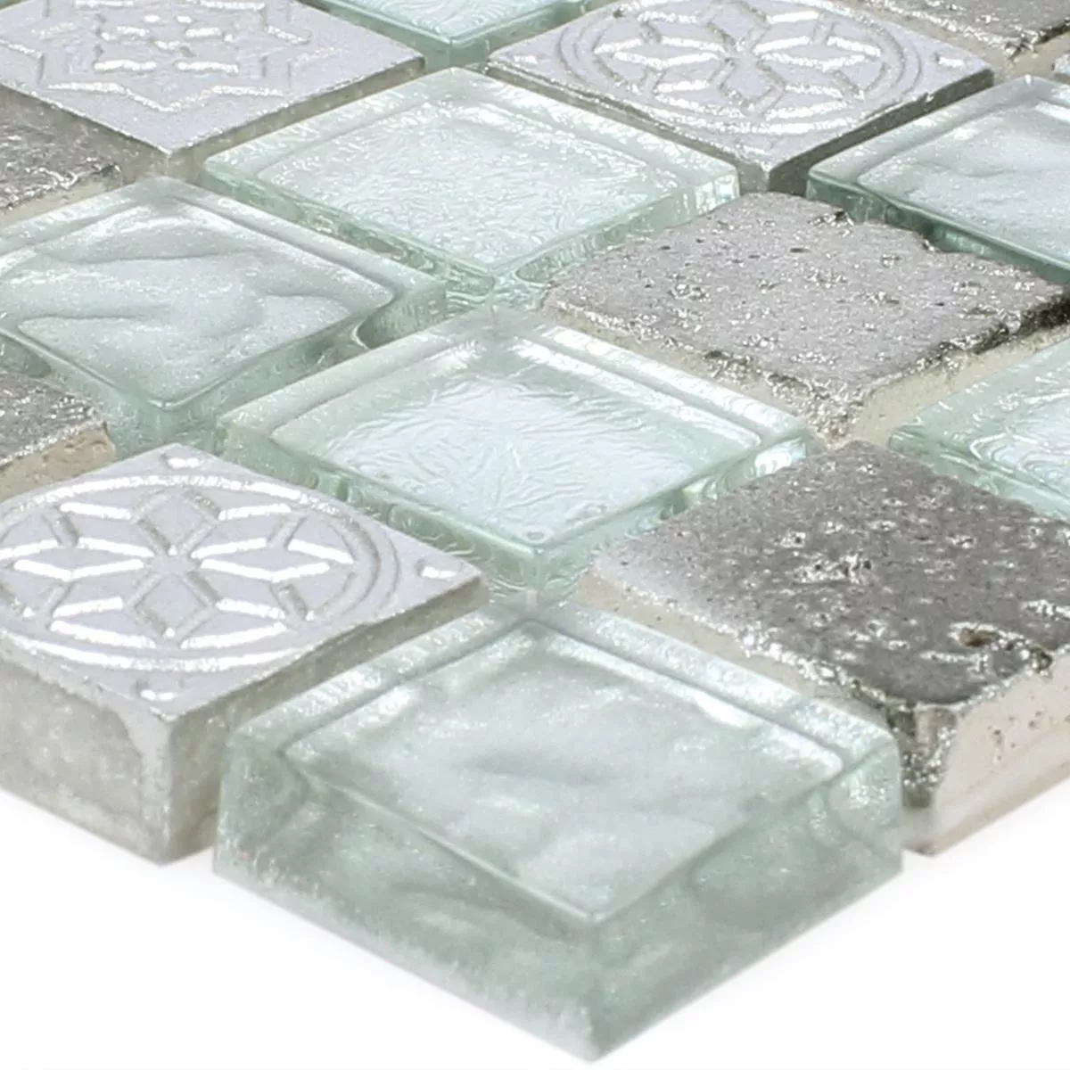 Échantillon Carrelage Mosaïque Georgia Verre Pierre Naturelle Mix Argent