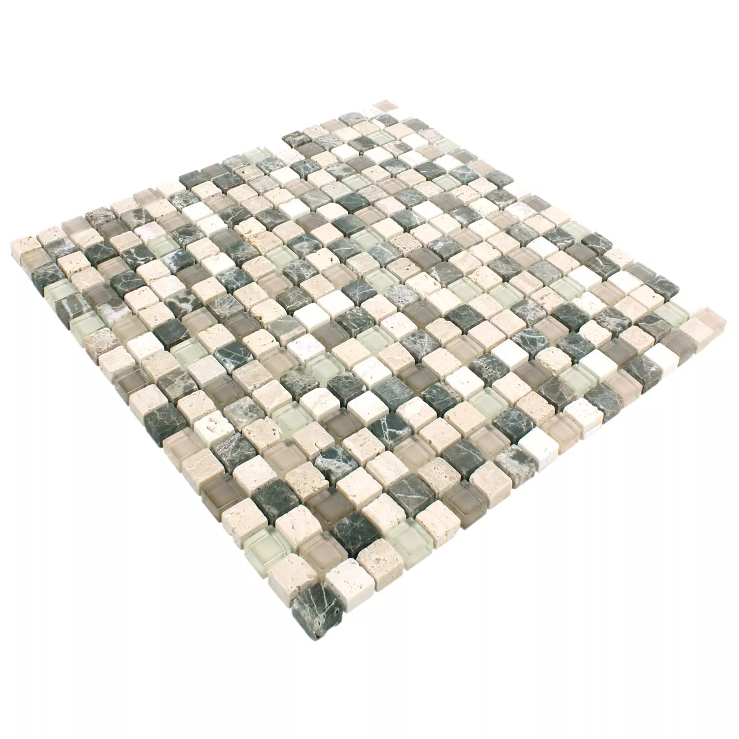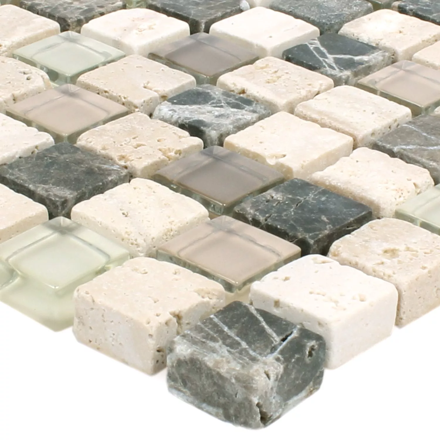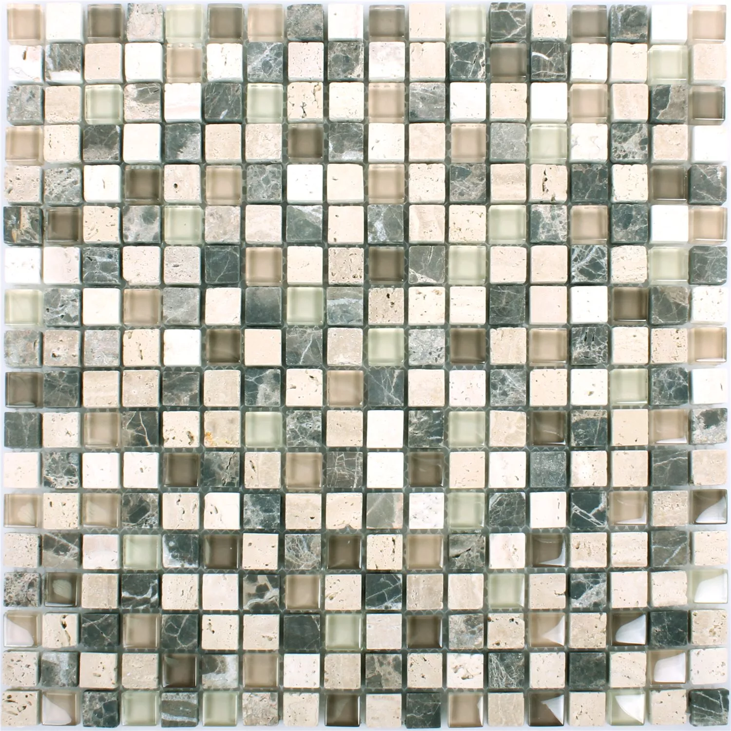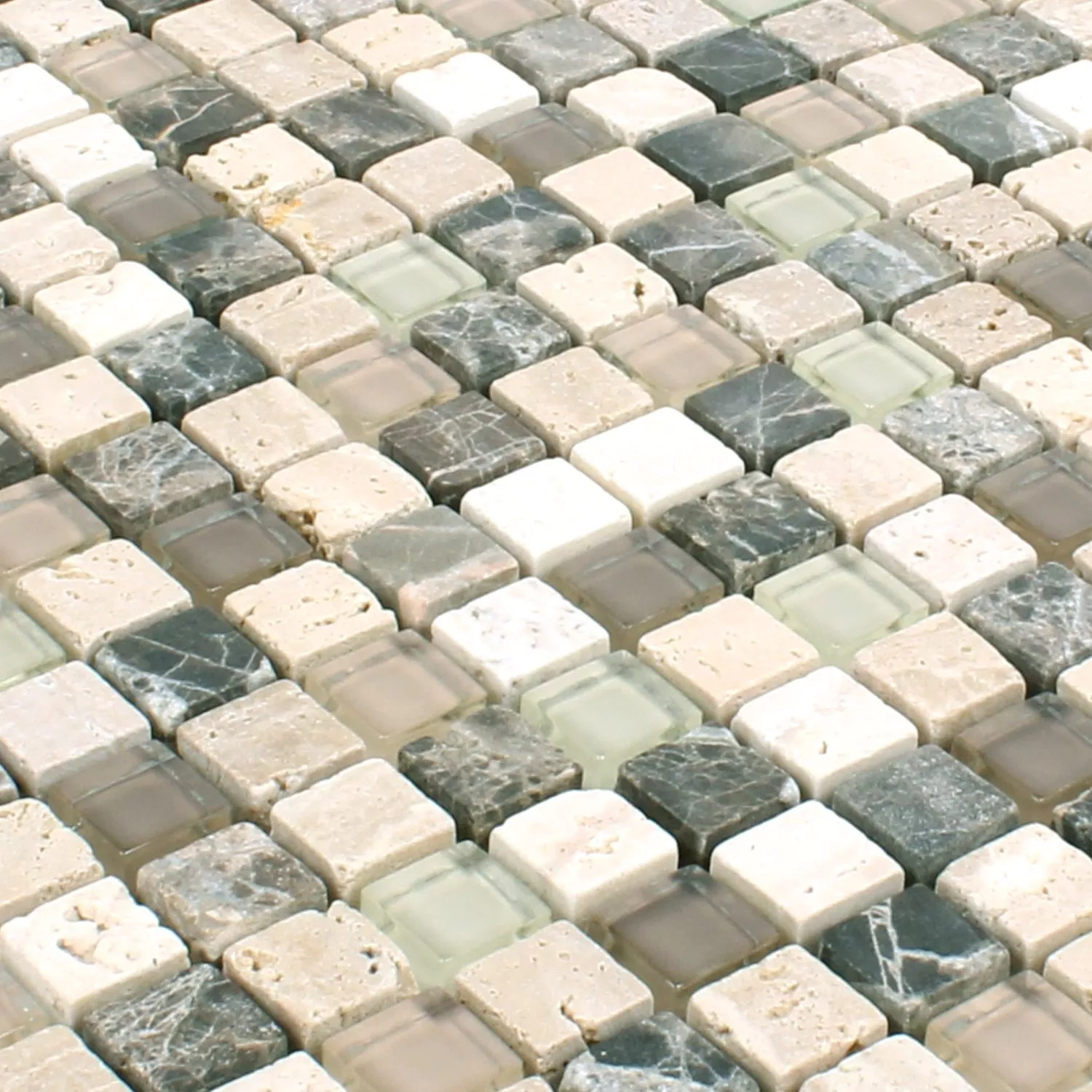 Échantillon Carrelage Mosaïque Milos Verre Pierre Naturelle Mix Brun Beige Quadrat