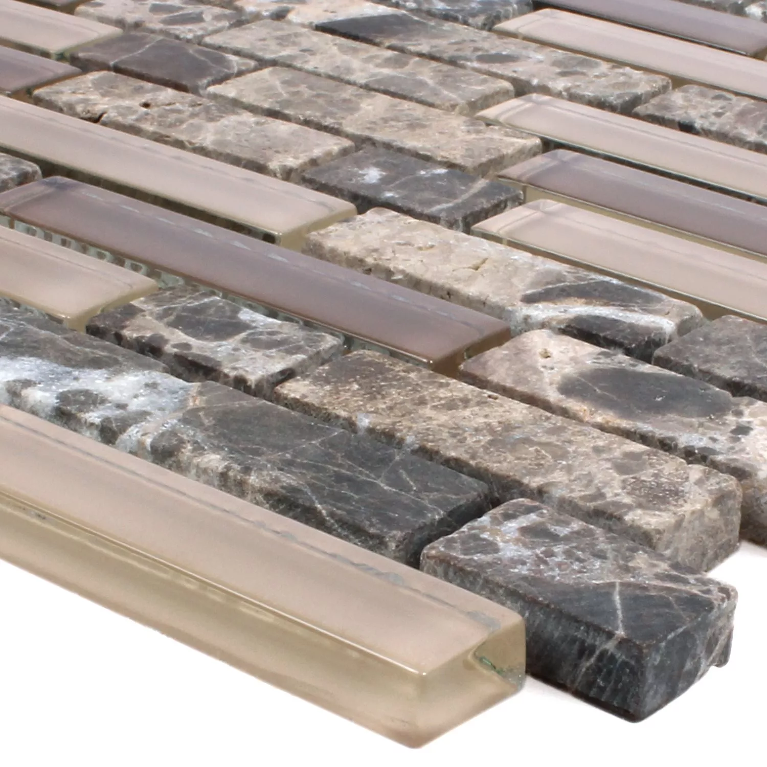 Échantillon Carrelage Mosaïque Milos Verre Pierre Naturelle Mix Brun Composite