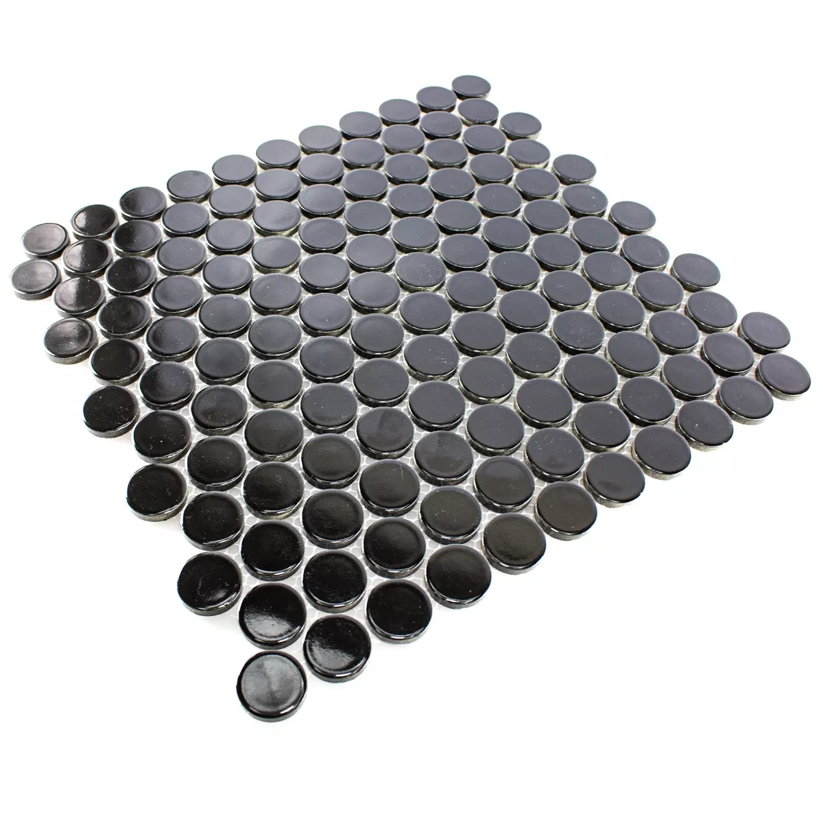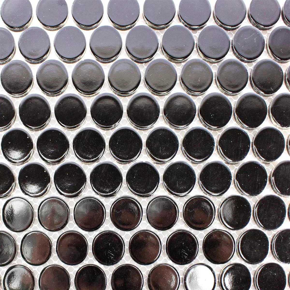 Échantillon Céramique Bouton Mosaïque Carrelage Harlingen Noir Brillant