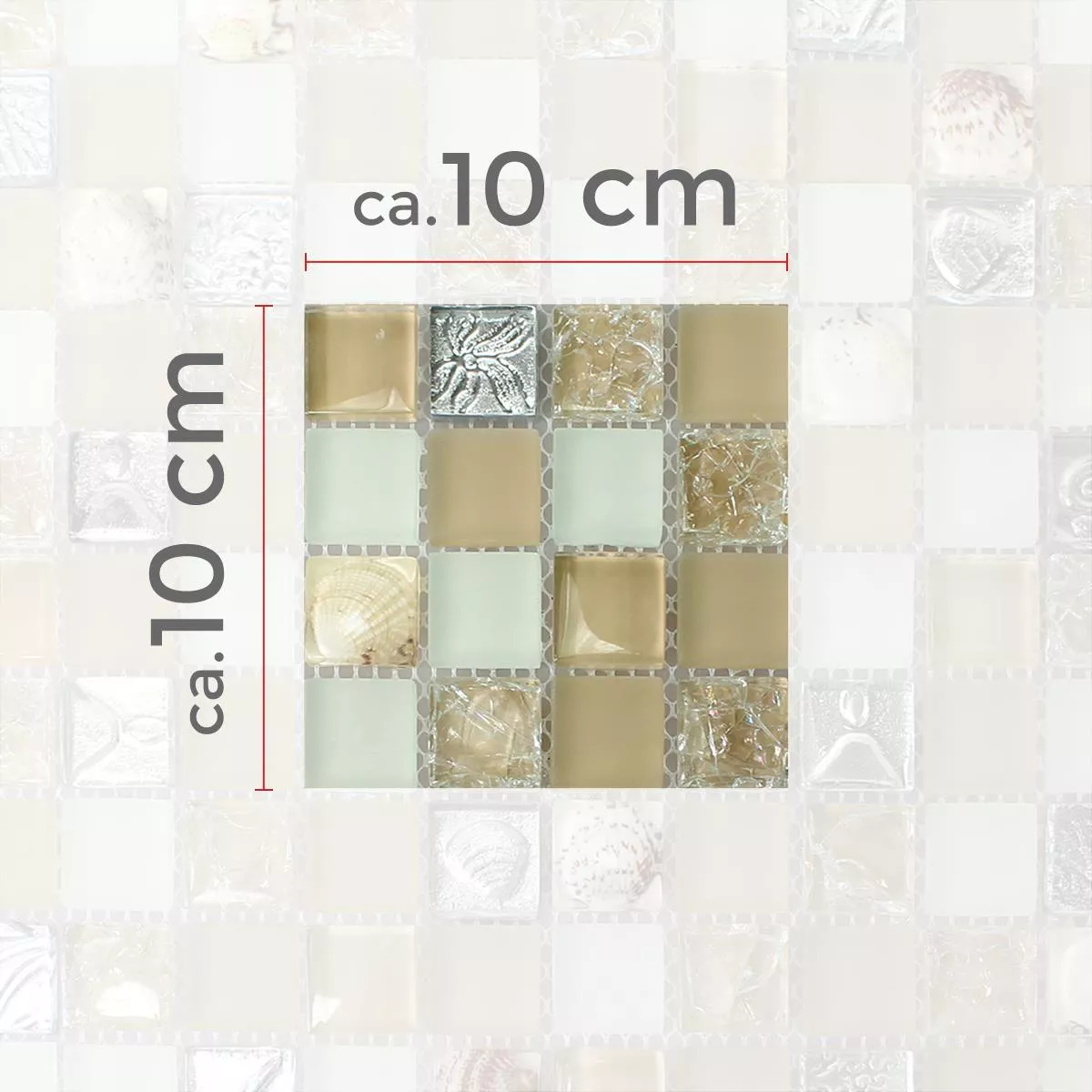 Échantillon de Verre Coquille Mosaïque Carrelage Byron Beige Mix