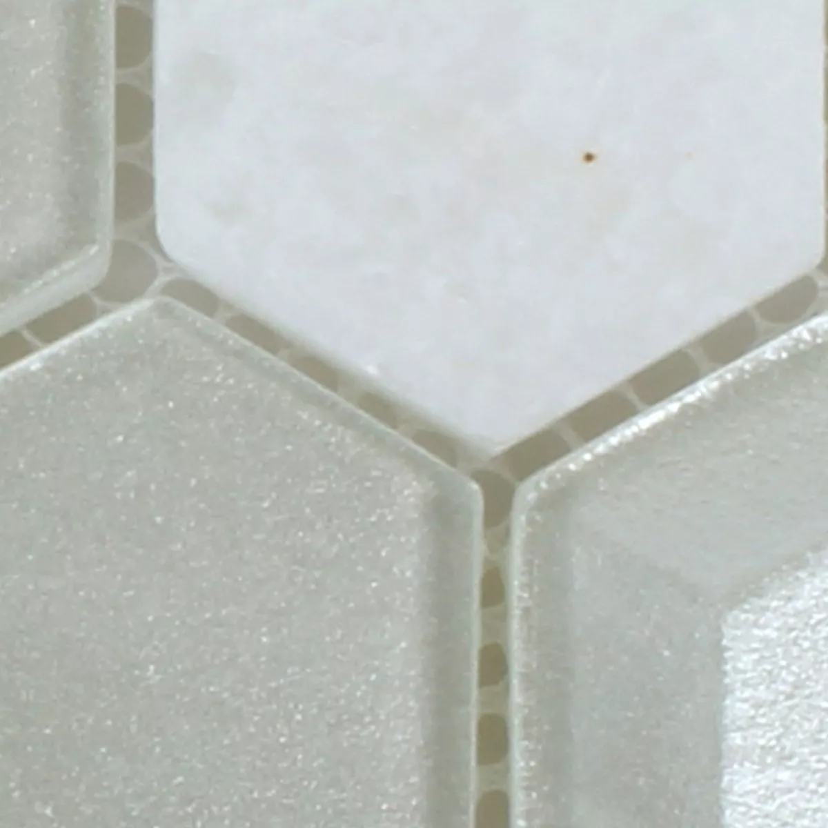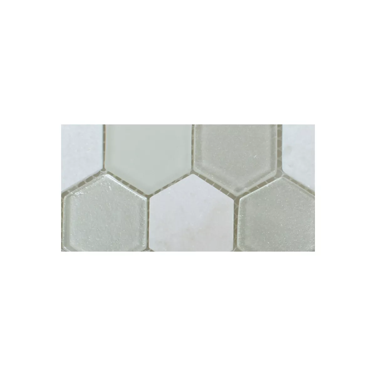 Échantillon Hexagone Verre Mosaïque Pierre Naturelle Blanc 3D