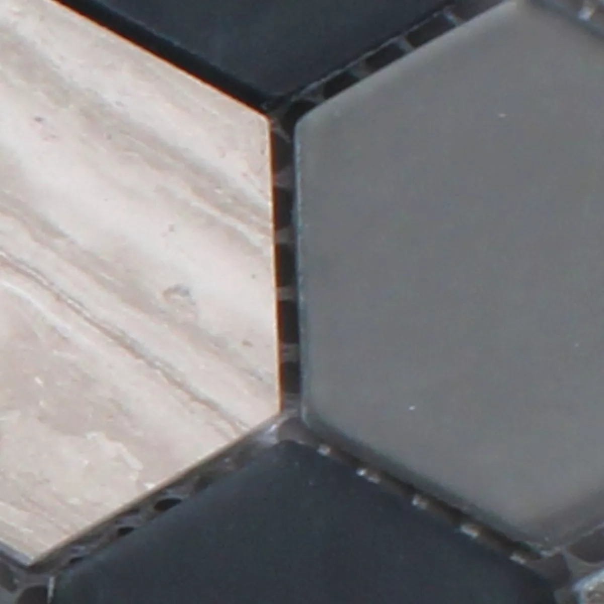 Échantillon Hexagone Verre Mosaïque Pierre Naturelle Noir Gris 3D