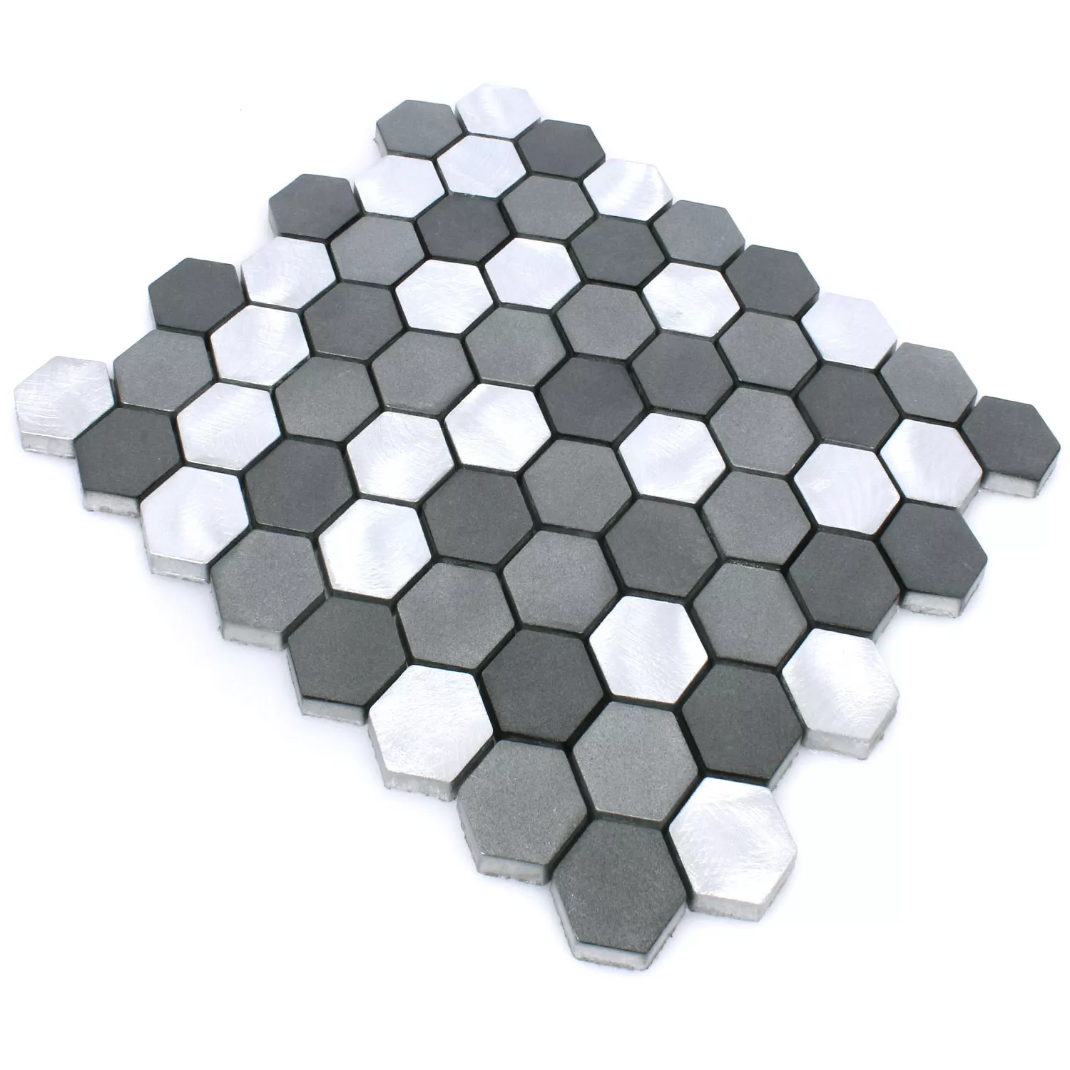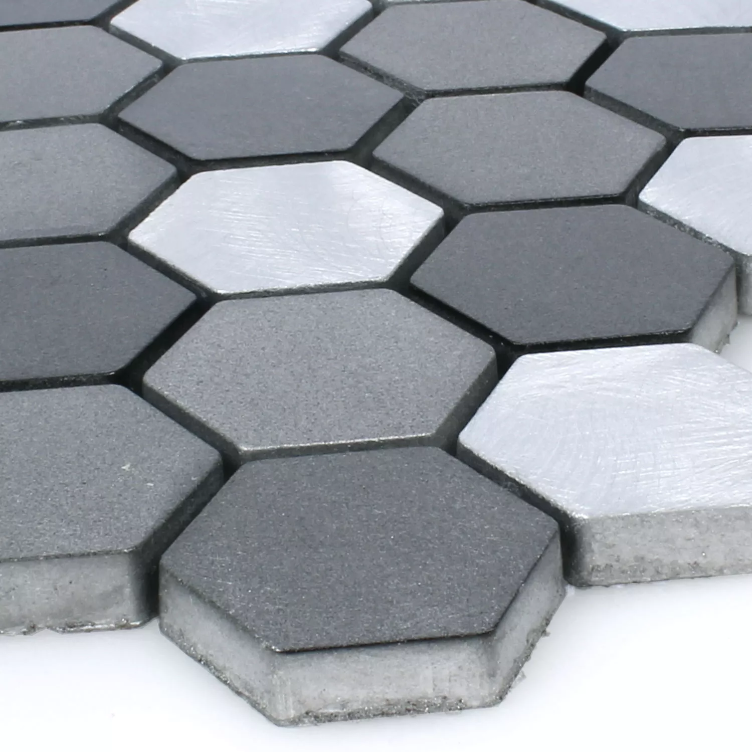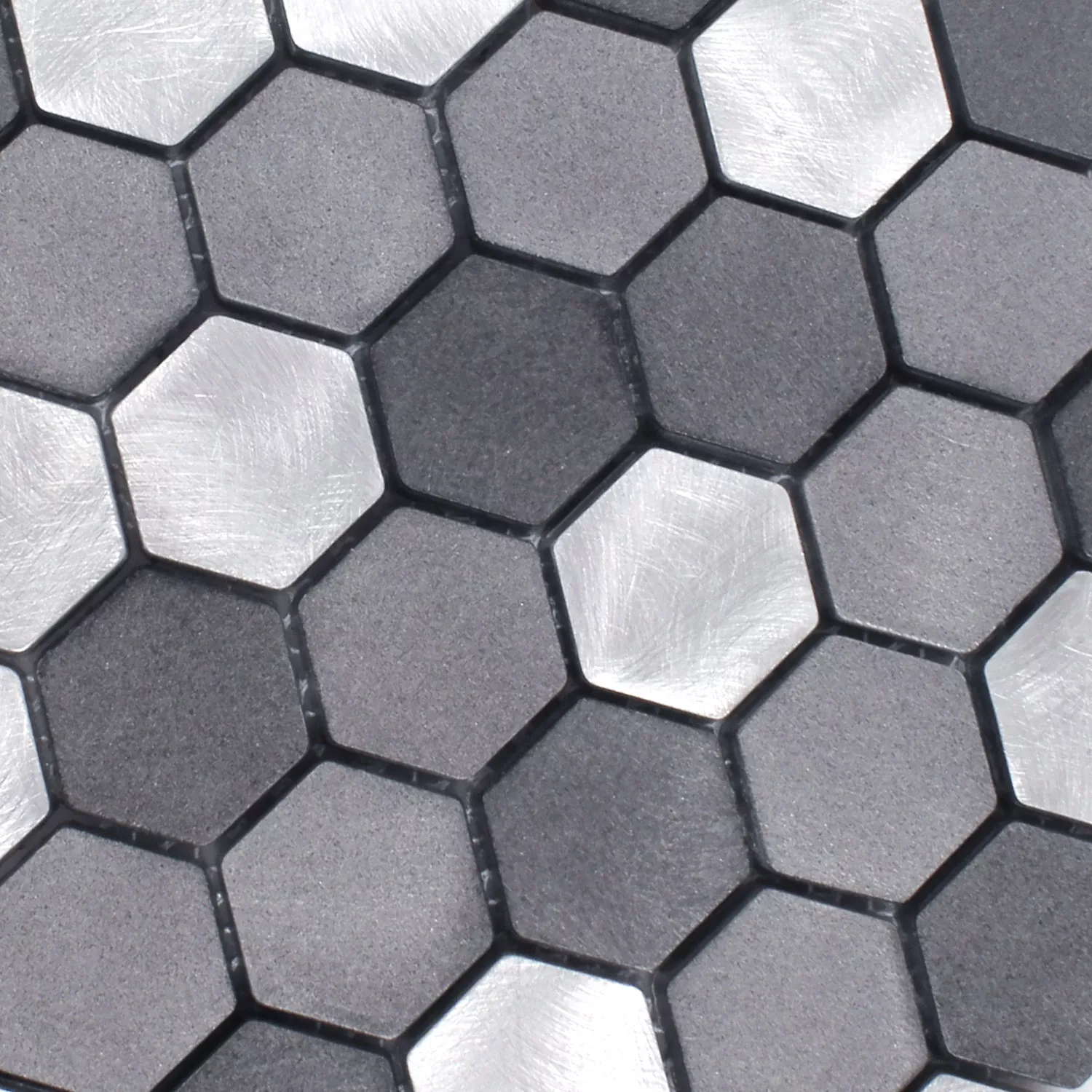 Échantillon Mosaïque Aluminium Apache Hexagone Noir Argent