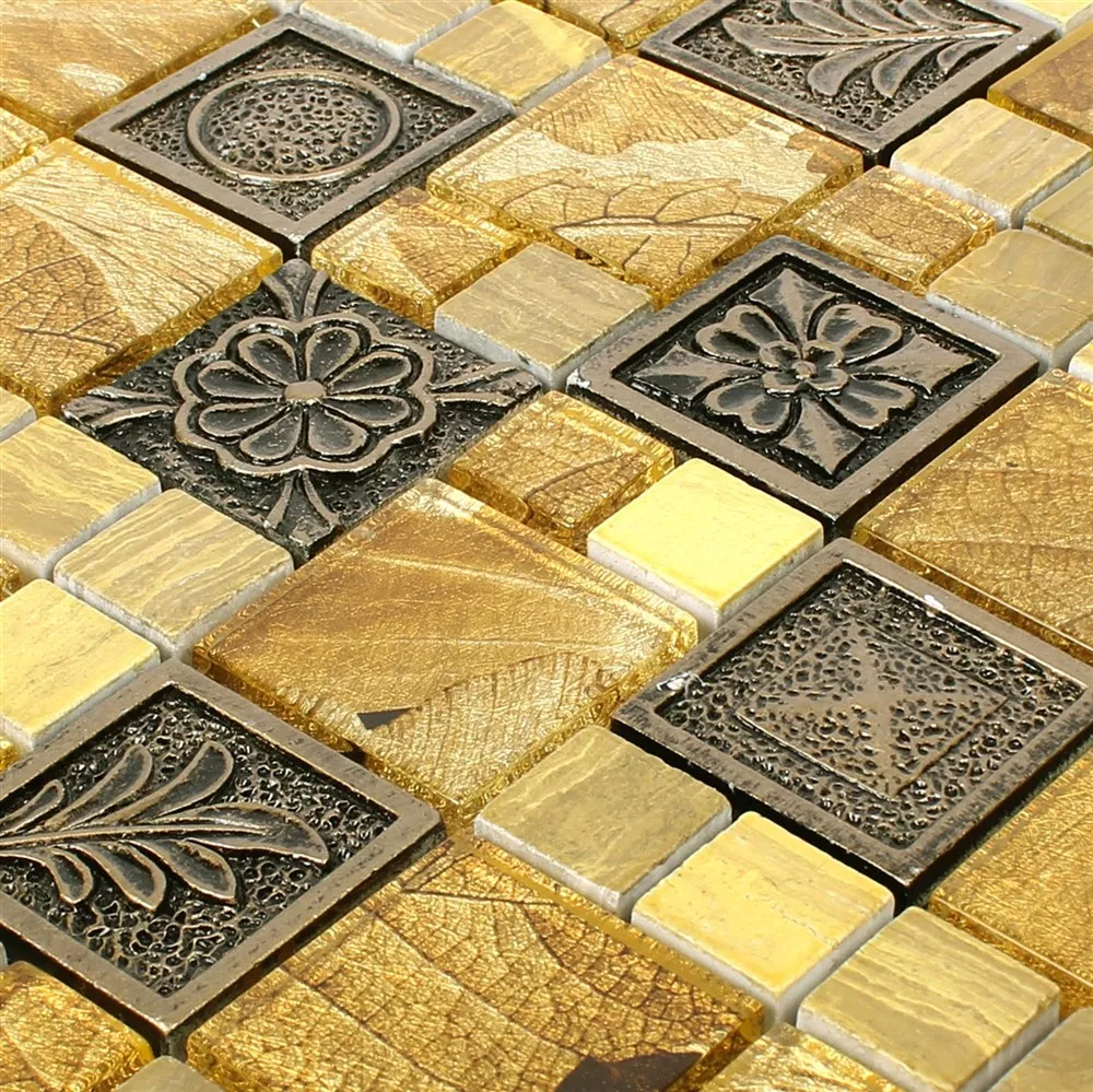 Échantillon Mosaïque Carrelage Levanzo Verre Résine Ornament Mix Or