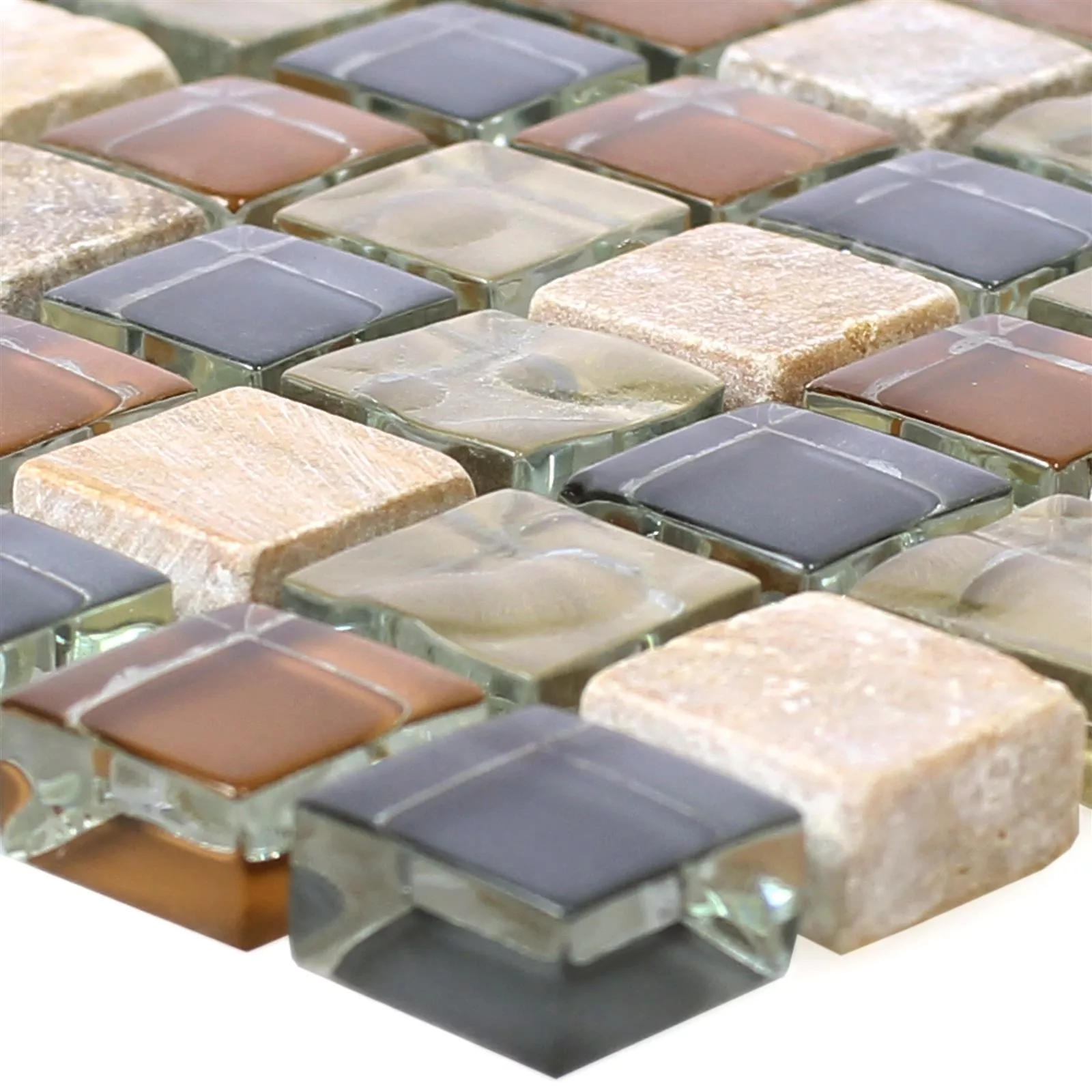 Échantillon Mosaïque En Verre Carreaux En Pierre Naturelle Festus Brun Beige Gris
