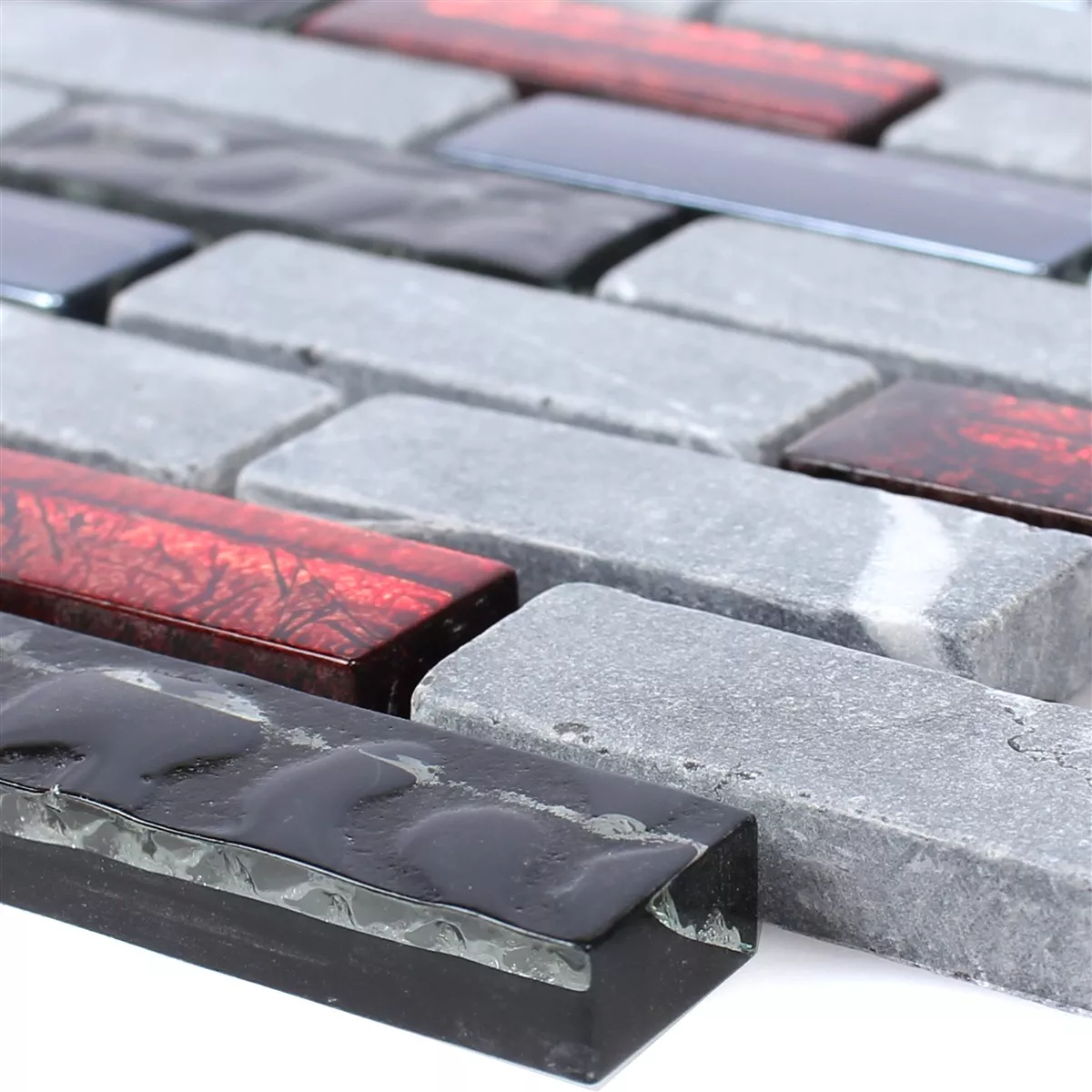 Échantillon Mosaïque En Verre Carreaux En Pierre Naturelle Marley Noir Rouge Gris