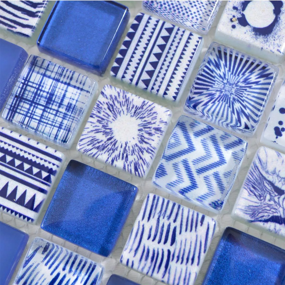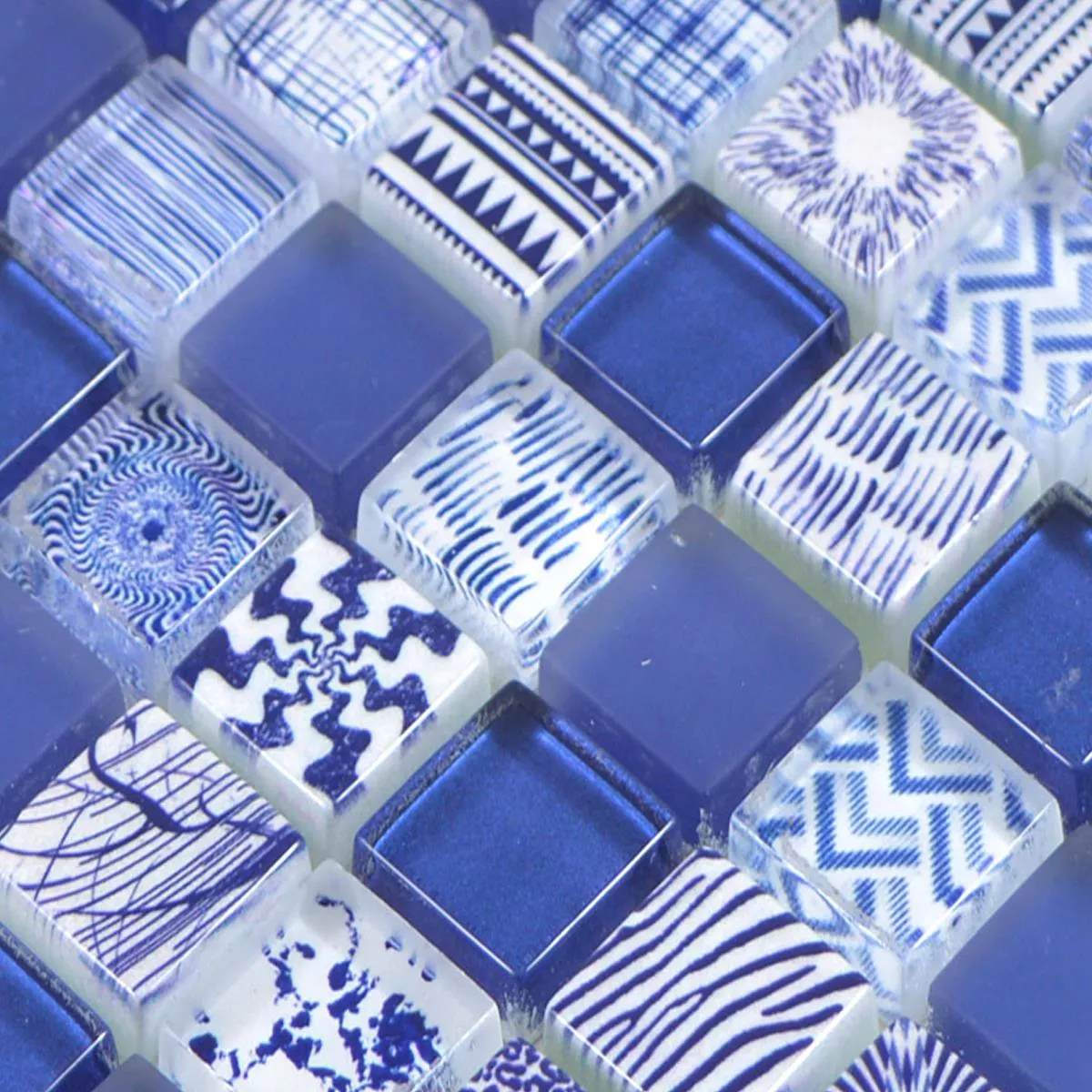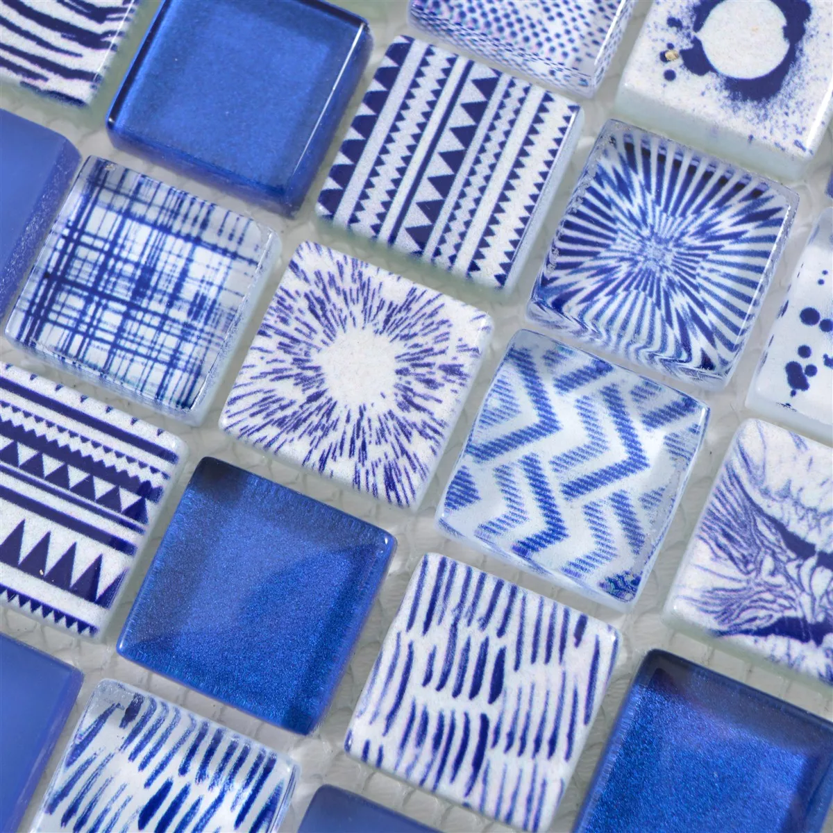 Échantillon Mosaïque En Verre Carrelage Cornelia Optique Rétro Bleu