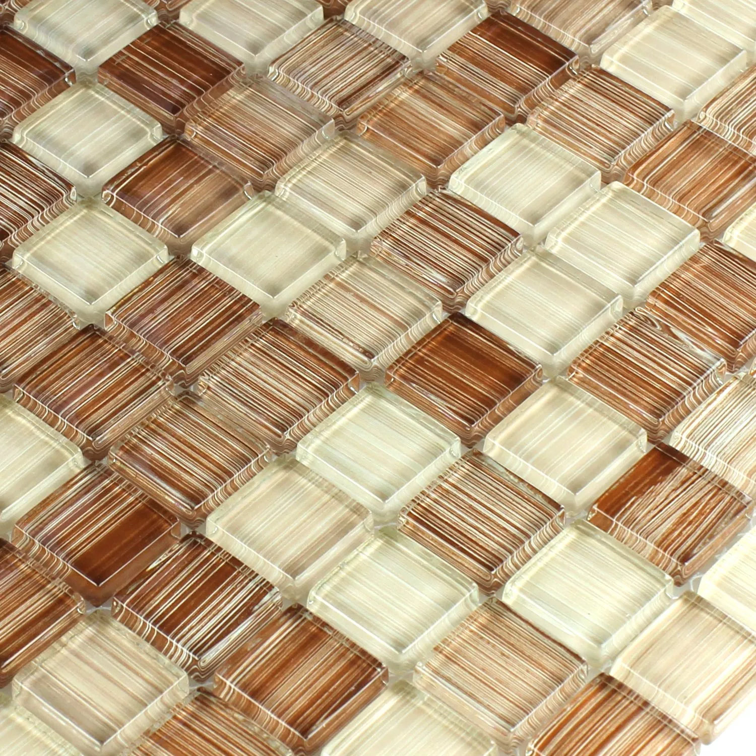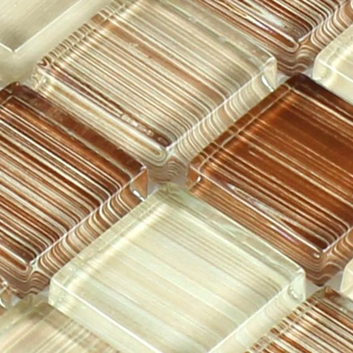 Échantillon Mosaïque En Verre Carrelage Lafayette Brun Beige Rayé 8mm