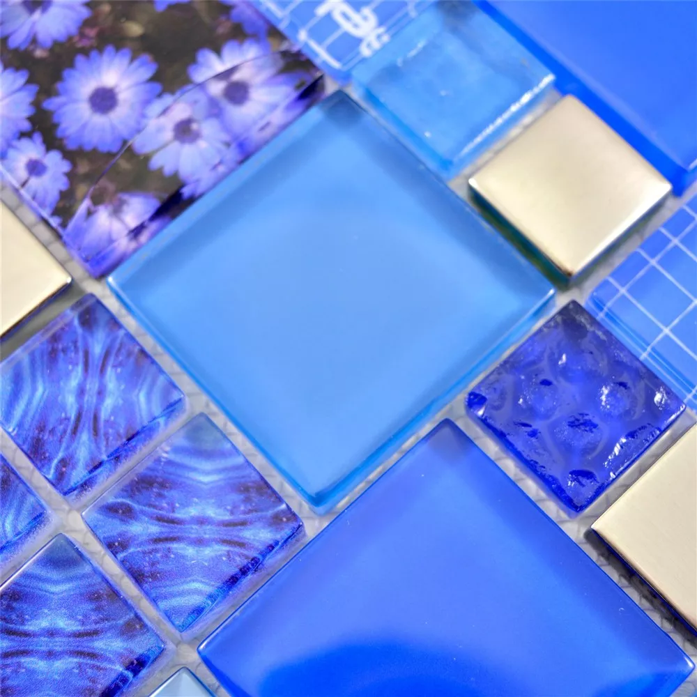 Échantillon Mosaïque En Verre Carrelage Nemesis Bleu Argent