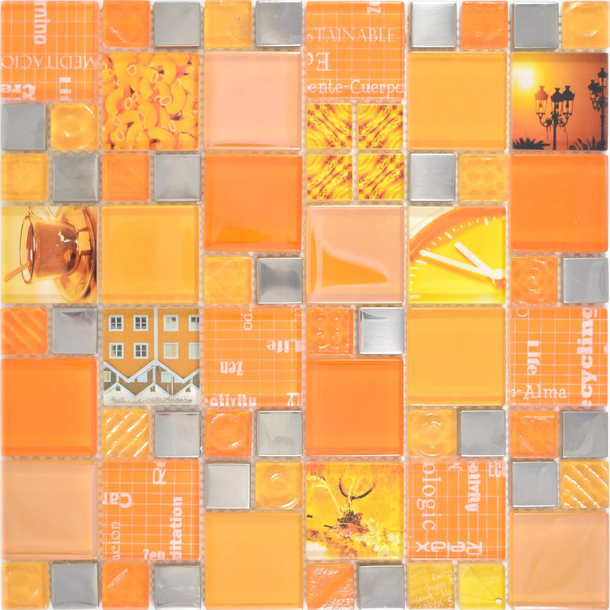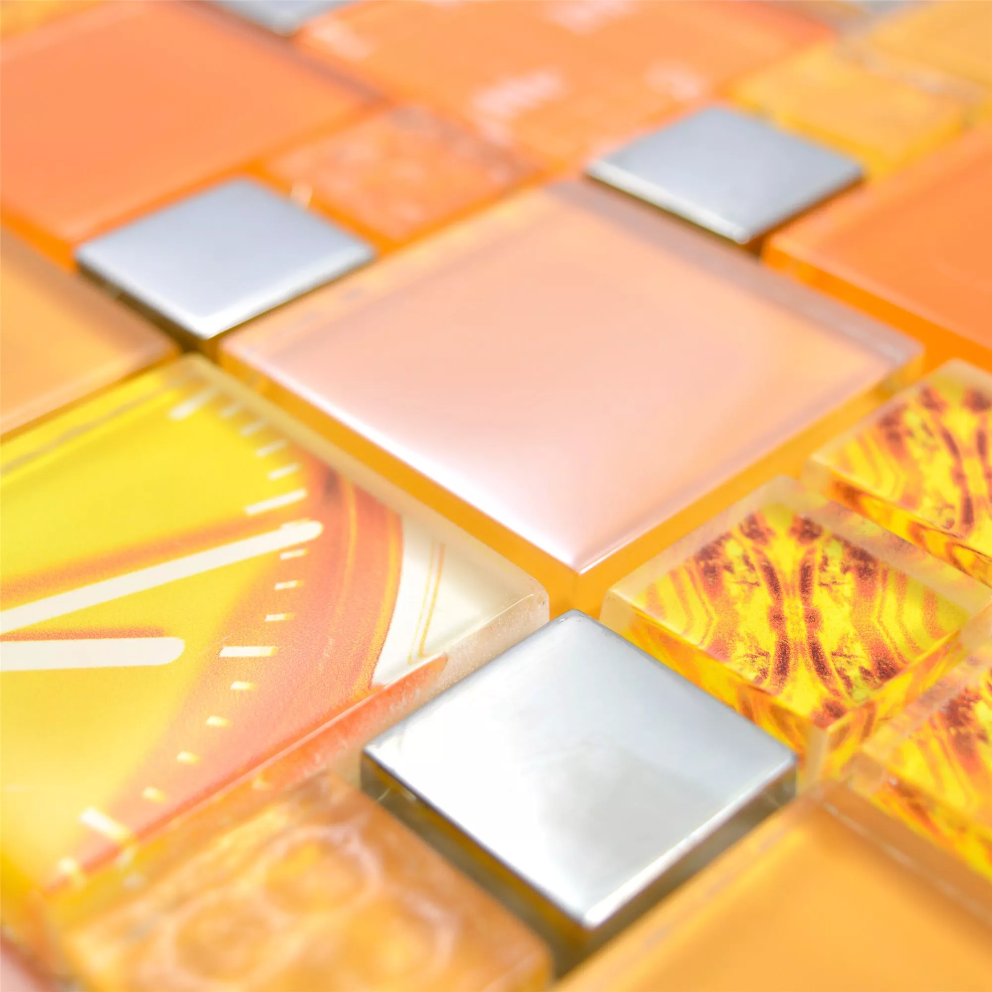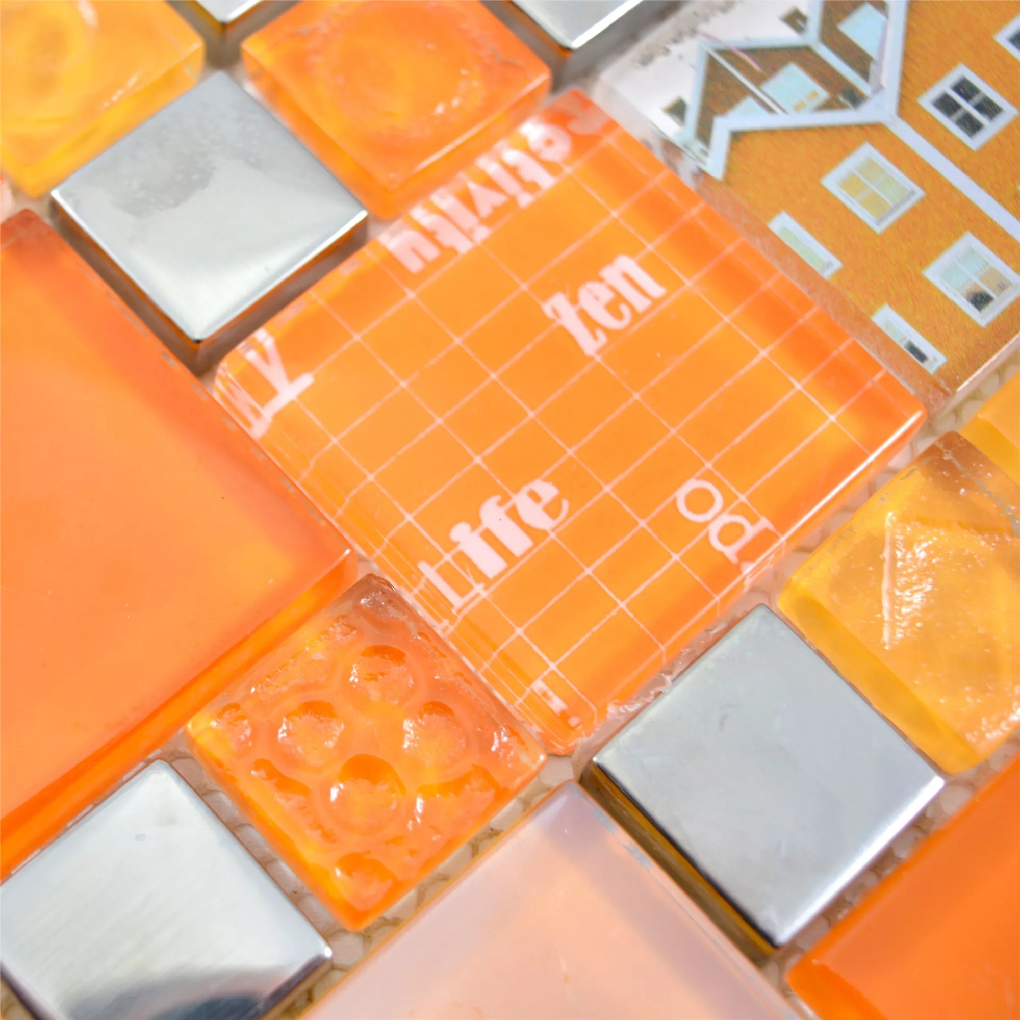Échantillon Mosaïque En Verre Carrelage Nemesis Orange Argent