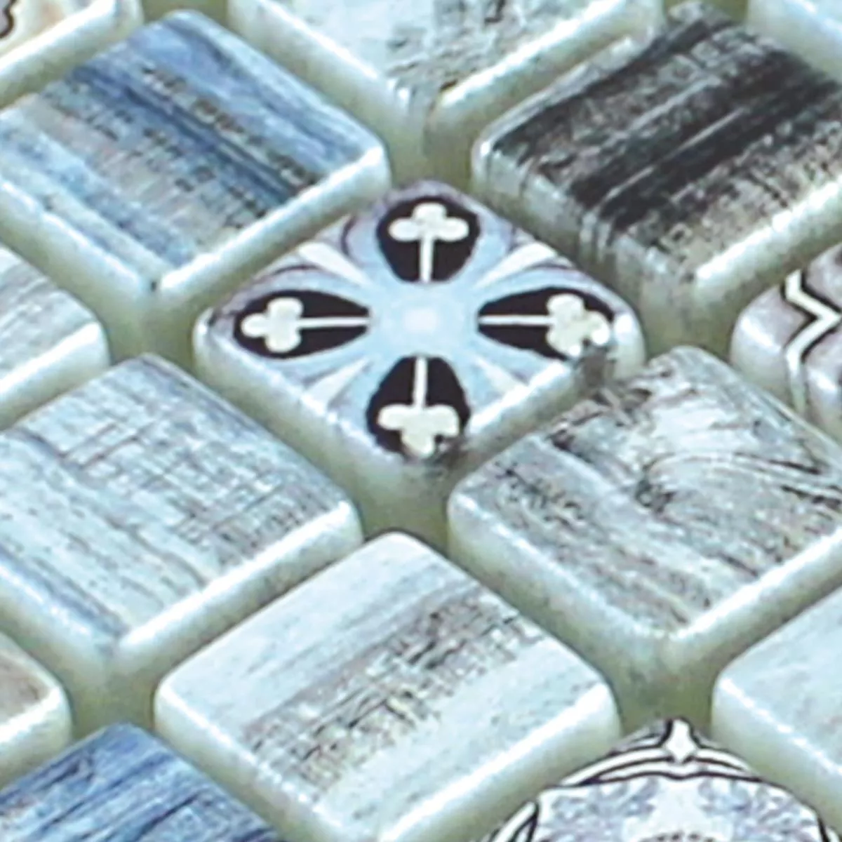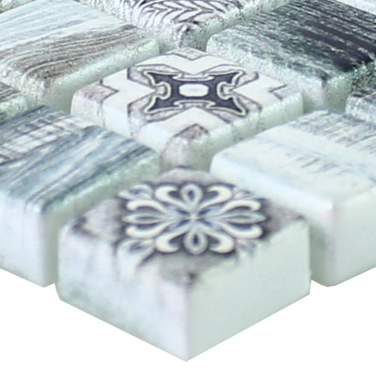 Échantillon Mosaïque En Verre Imitation Bois Carrelage Vision Gris Bleu