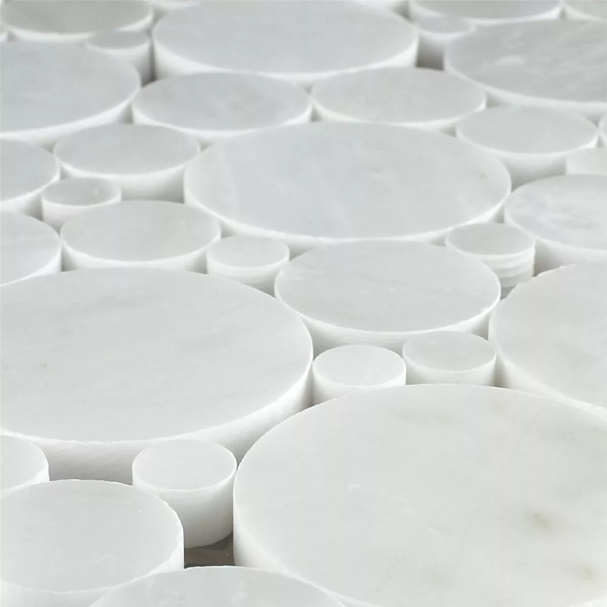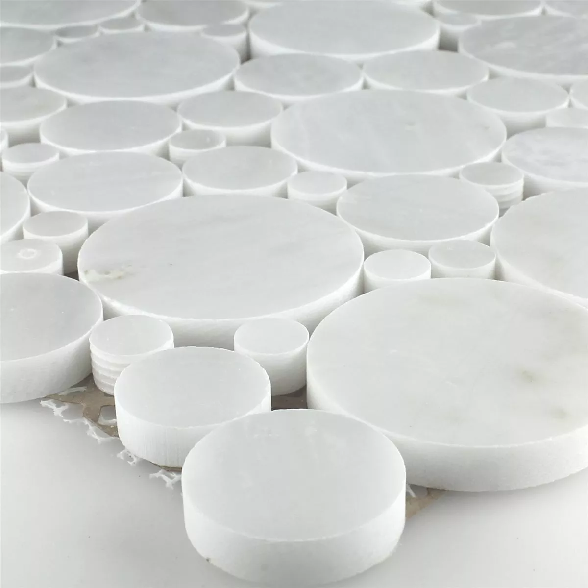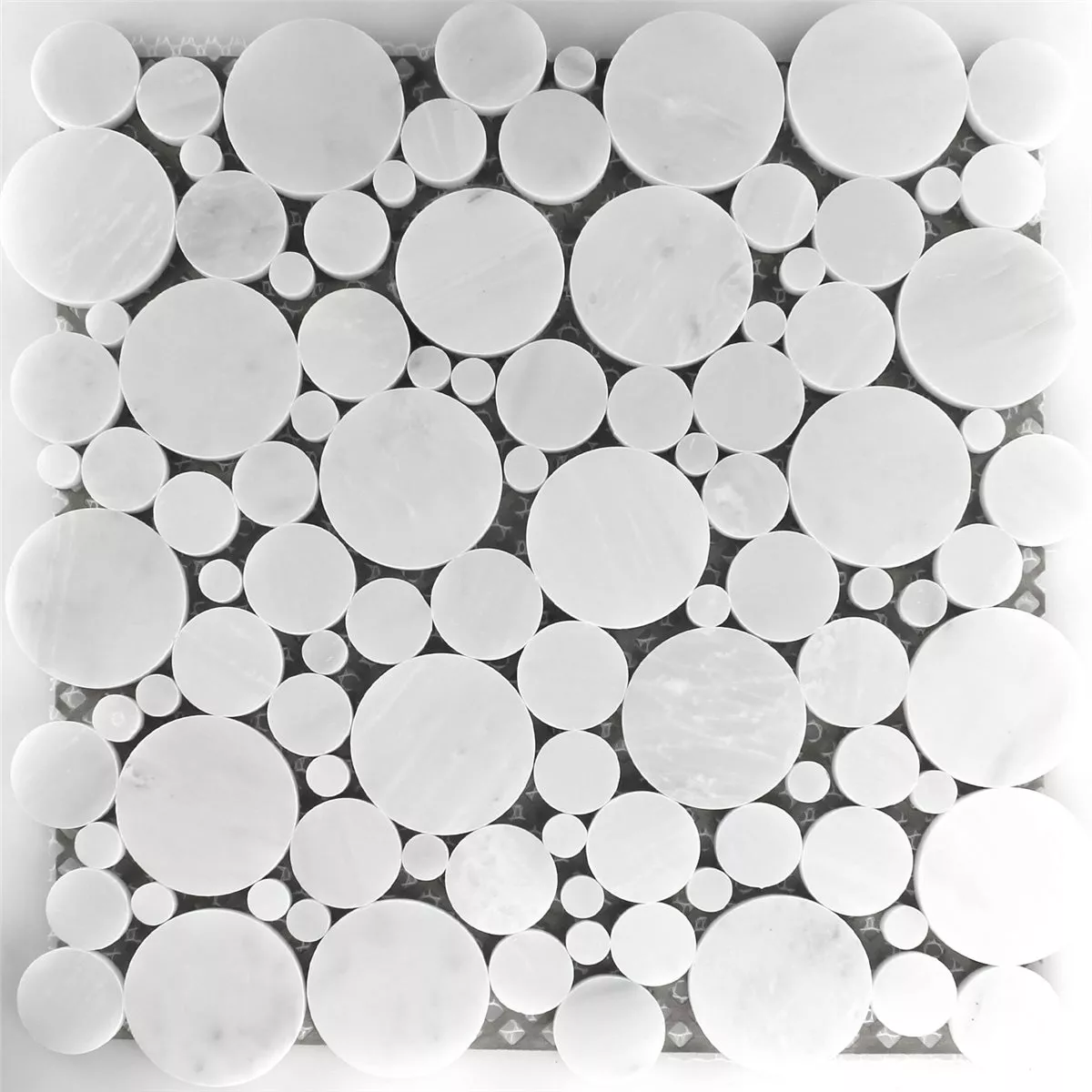 Échantillon Mosaïque Pierre Naturelle Marbré Rond Blanc Poli