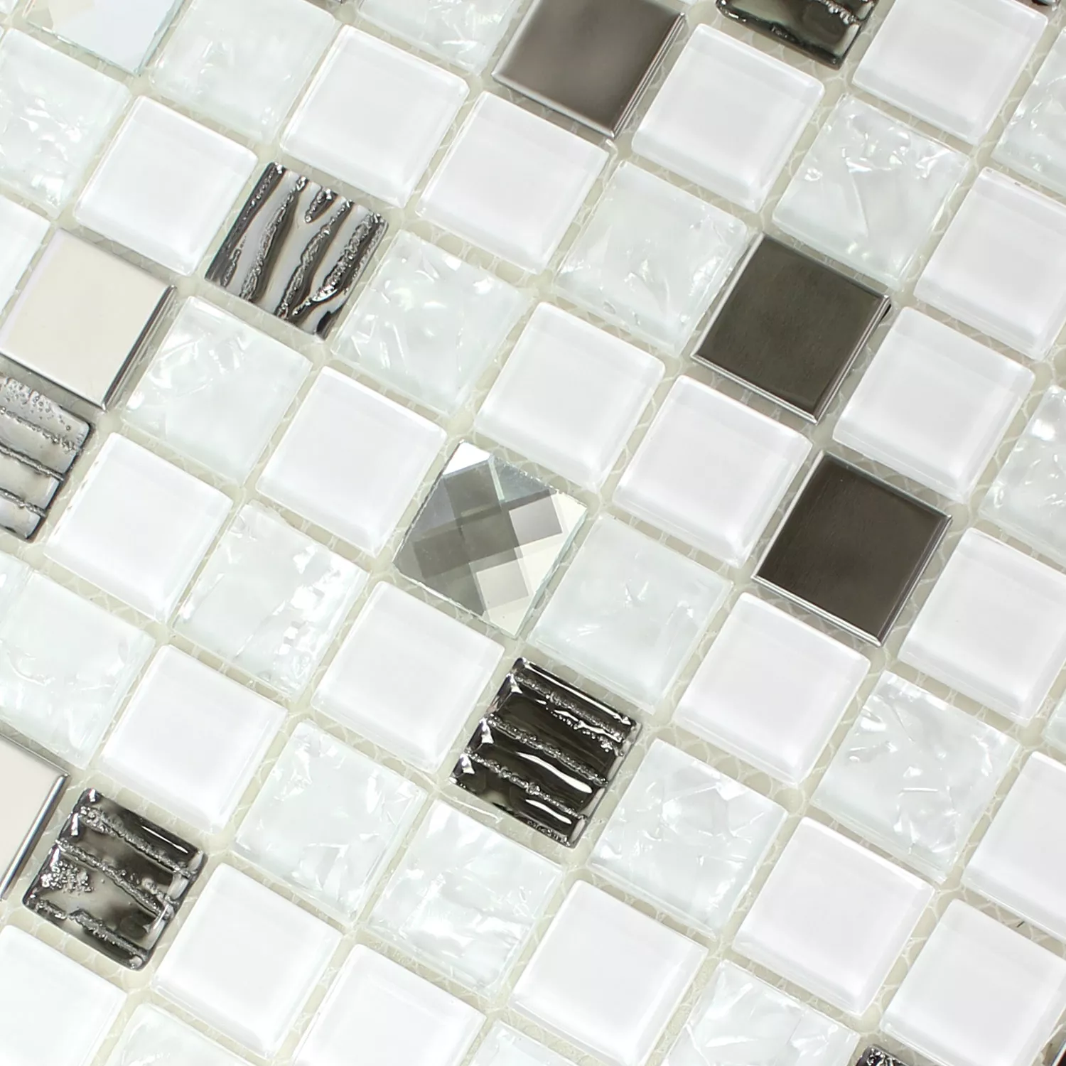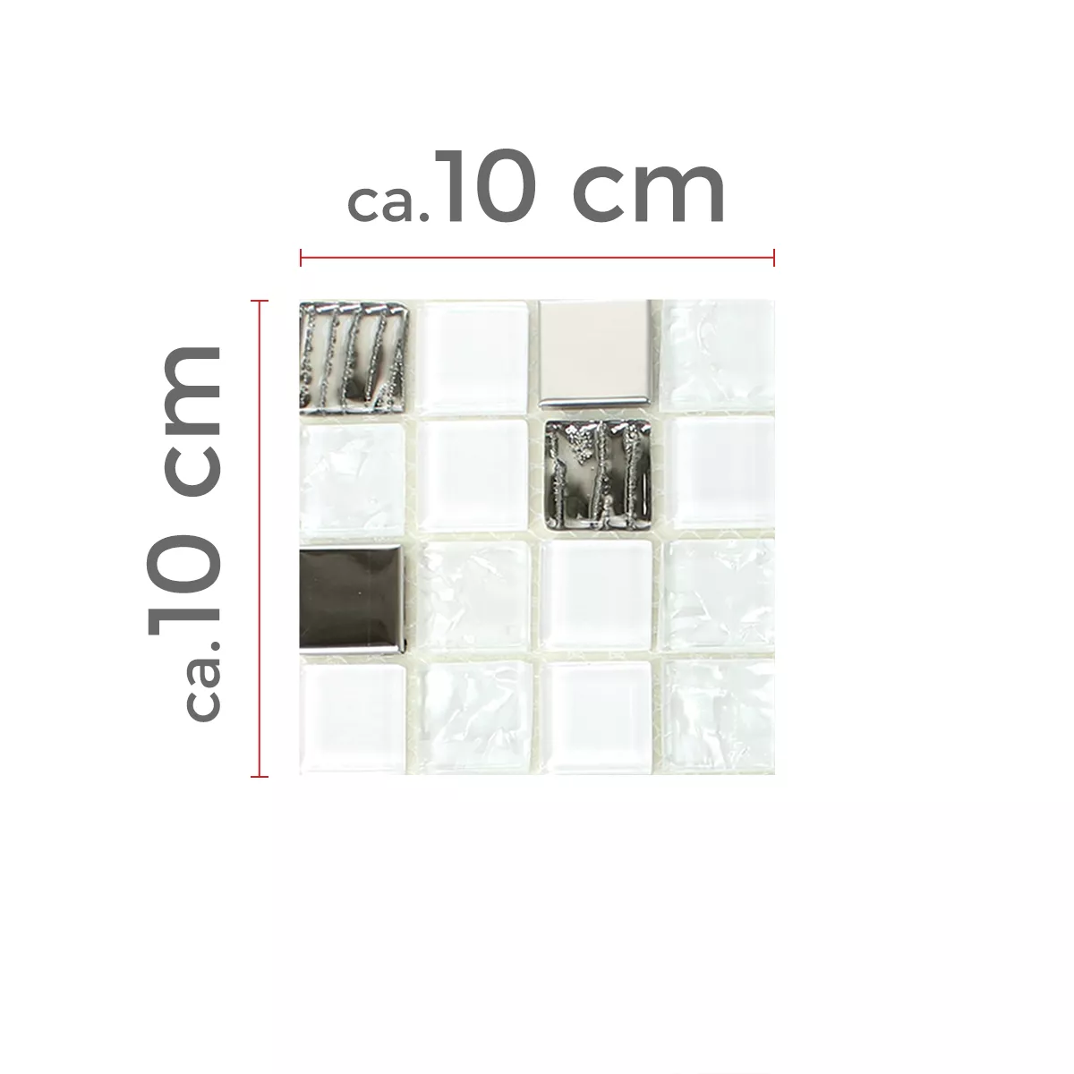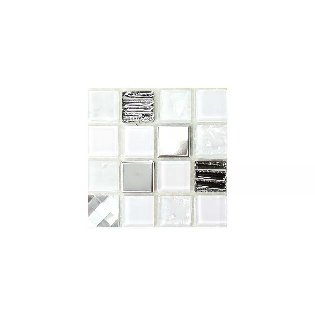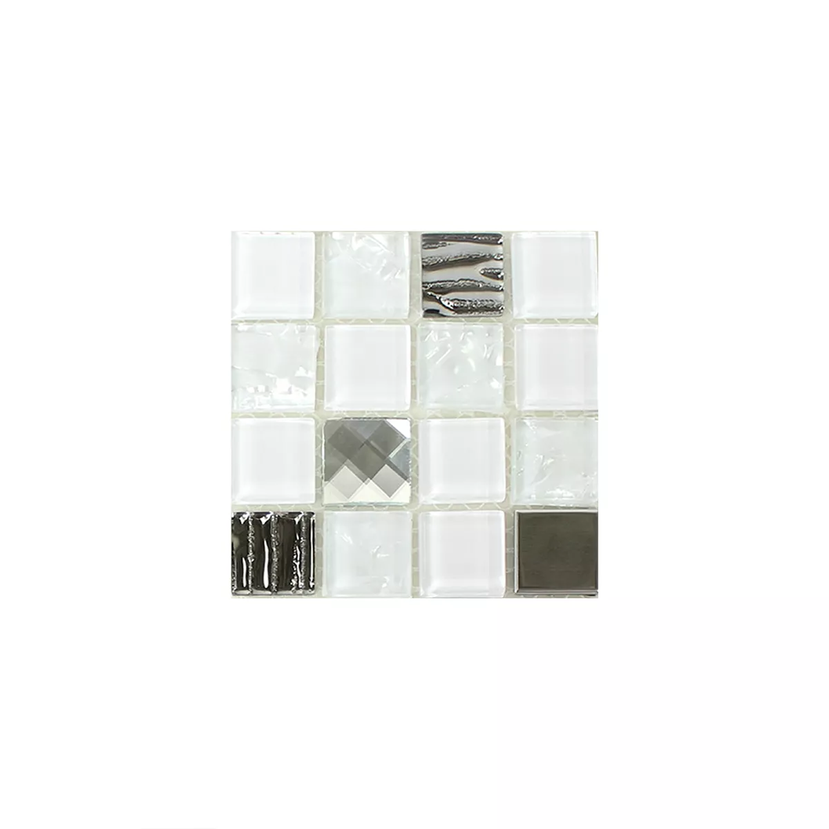 Échantillon Mosaïque Verre Acier Inoxydable Auto Adhésif Blanc Argent
