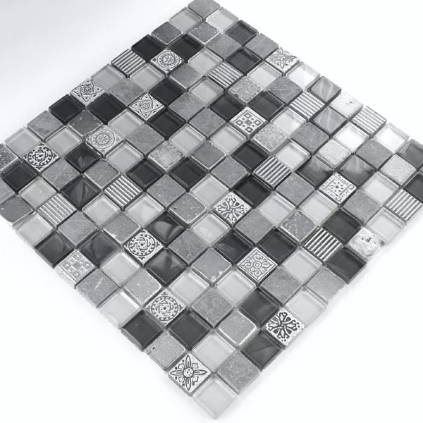 Échantillon Mosaïque Verre Marbré Calcaire Boston Gris