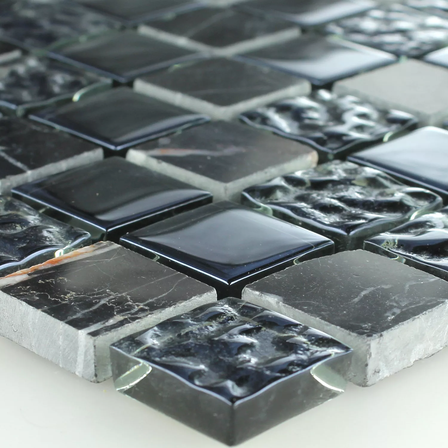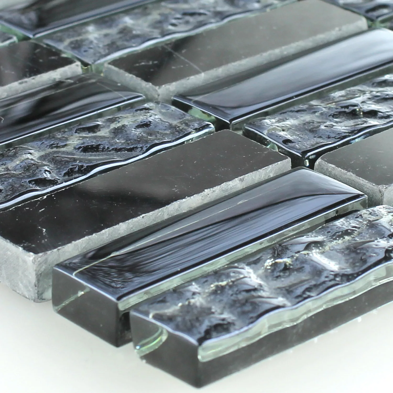 Échantillon Mosaïque Verre Marbré Noir Cannelé