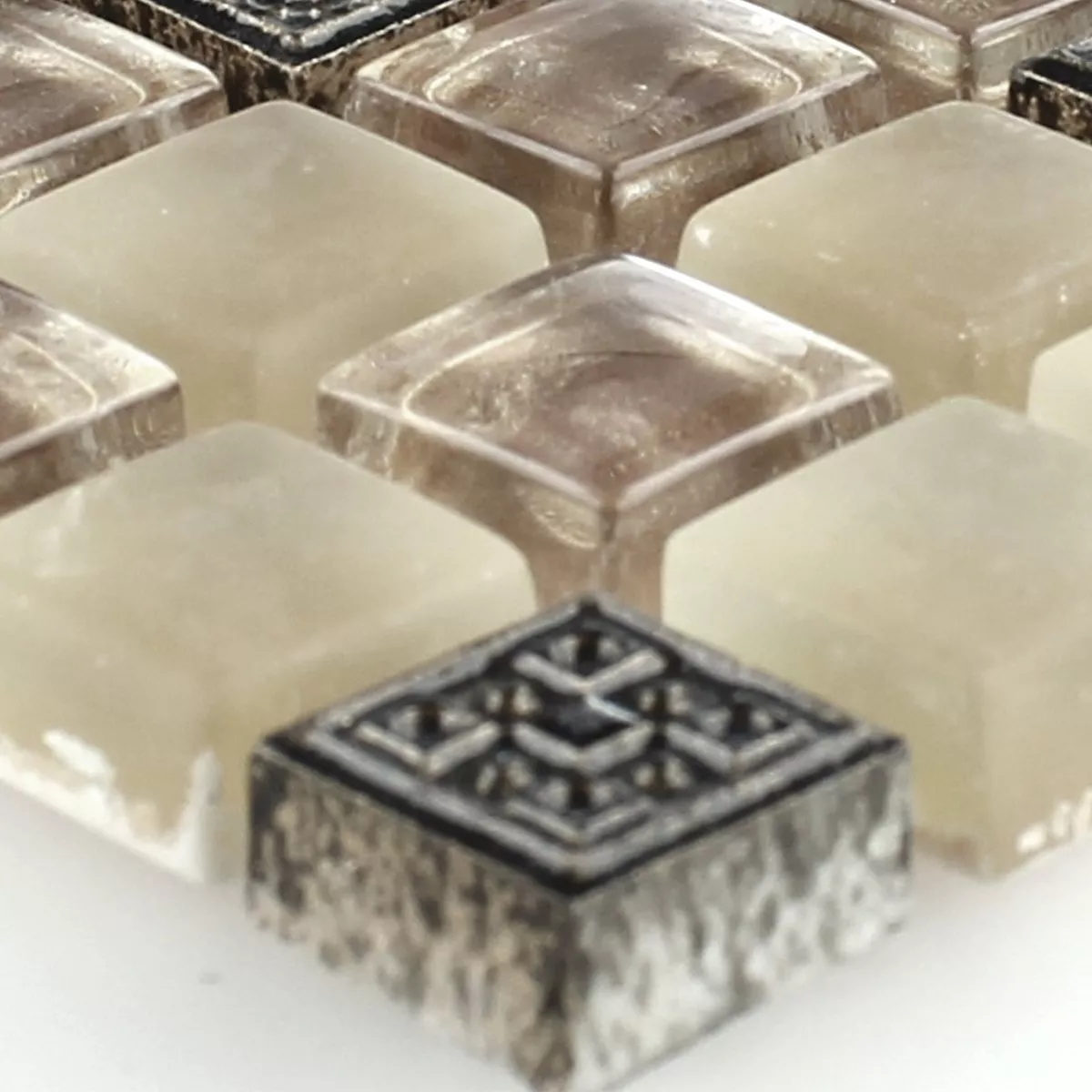 Échantillon Mosaïque Verre Pierre Naturelle Ornament Beige Mix
