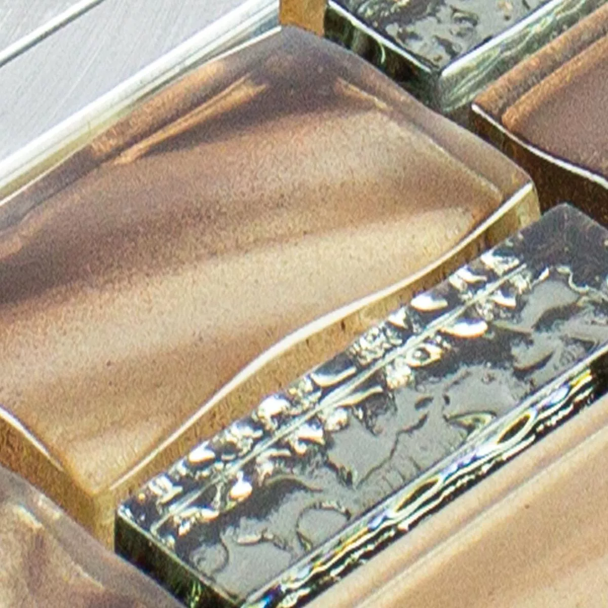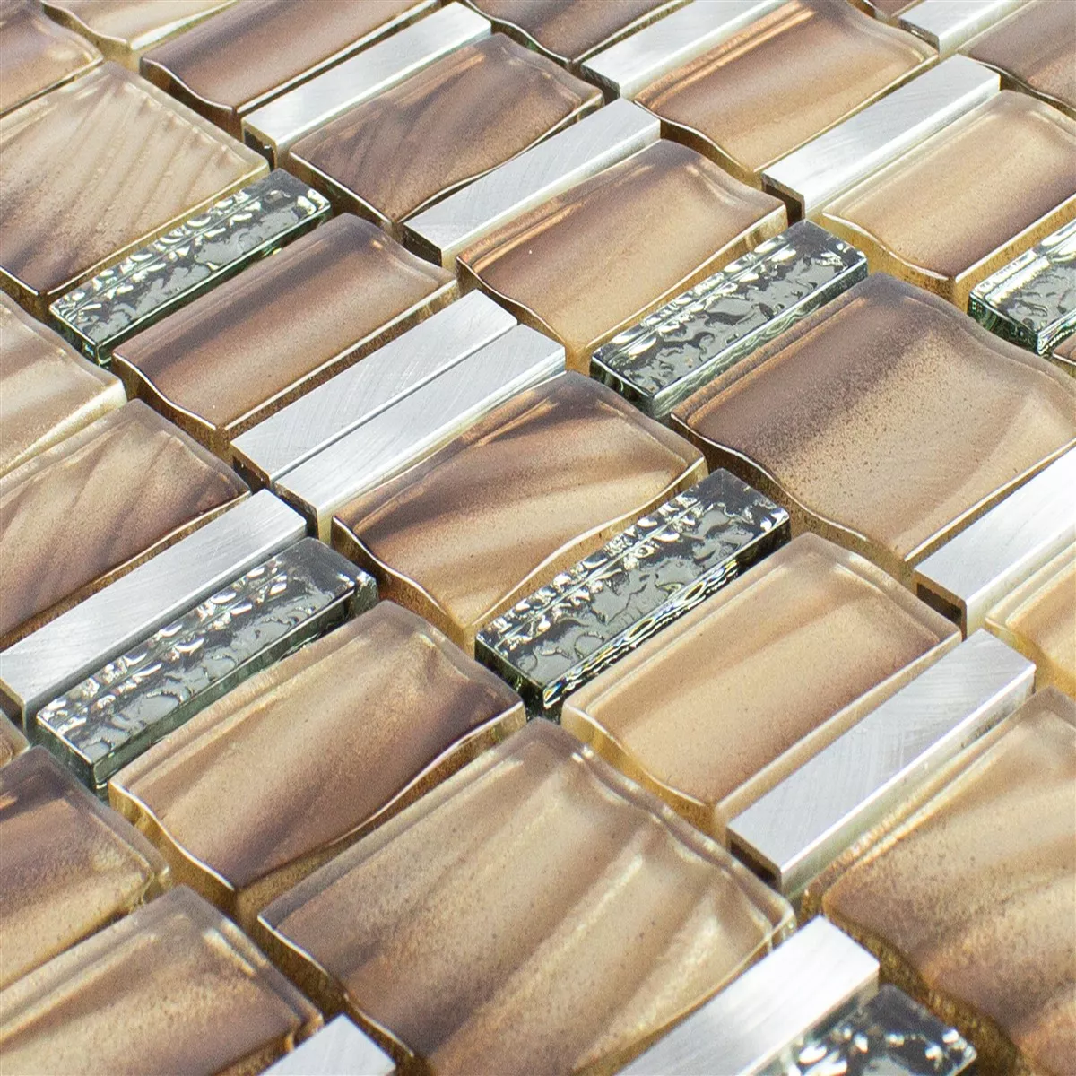 Échantillon Verre Métal Mosaïque Carrelage Union Brun Argent