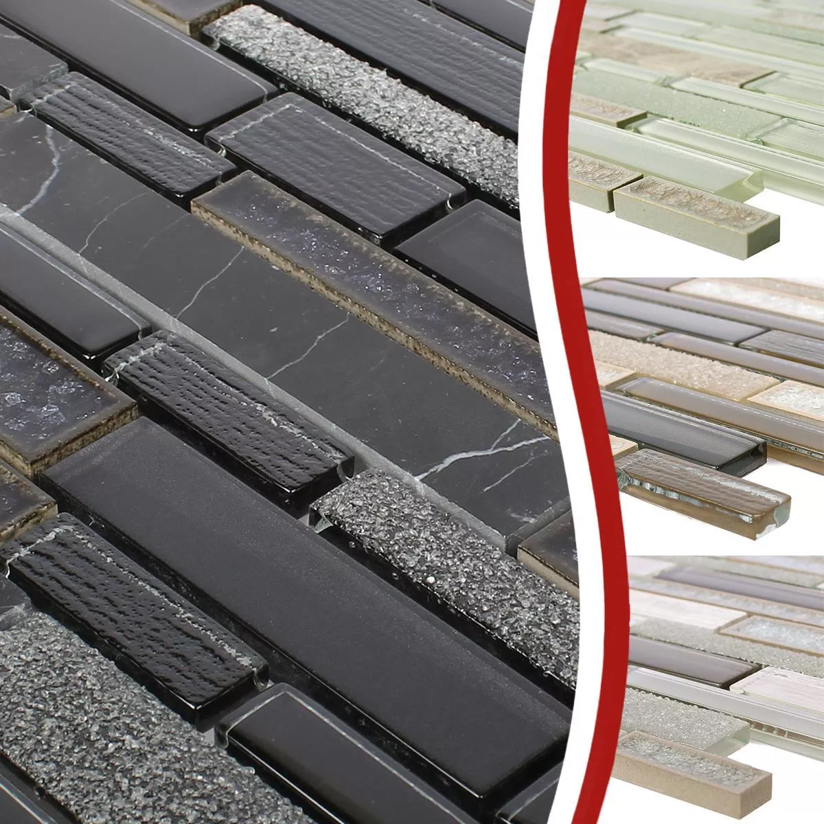 Chaque carreau et chaque mosaïque ont des exigences différentes pour la coupe, la pose et le traitement en raison des caractéristiques individuelles des matériaux et des conditions d'utilisation. Veuillez demander à un expert local une pose correcte et sûre de vos mosaïques ou carreaux. Nous ne sommes pas responsables de l'utilisation non professionnelle et de la fabrication défectueuse des matériaux de construction.
