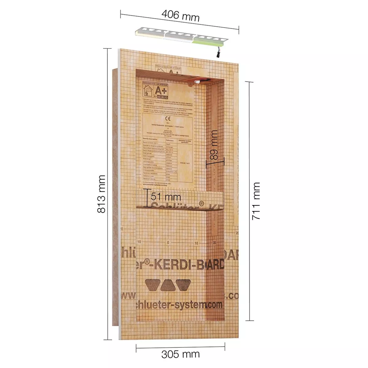 Kit de niche Schlüter Kerdi Board NLT éclairage LED blanc chaud 30,5 x 71,1 x 8,9 cm