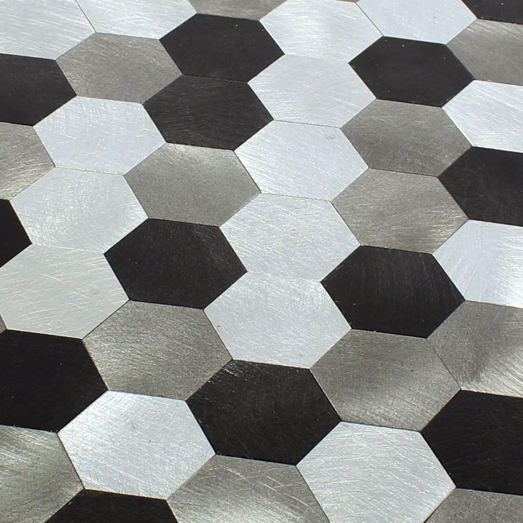 Les carreaux de mosaïque au format hexagonal sont noirs, argentés et gris. La taille du tapis est de 30x30 cm et la taille des pierres est de 23x23 mm. Les carreaux muraux Tanana ne conviennent qu'à un usage intérieur et ne doivent pas être utilisés dans des pièces humides telles que des saunas ou des salles de bains. Un avantage très particulier de ce produit est qu'il est auto-adhésif.