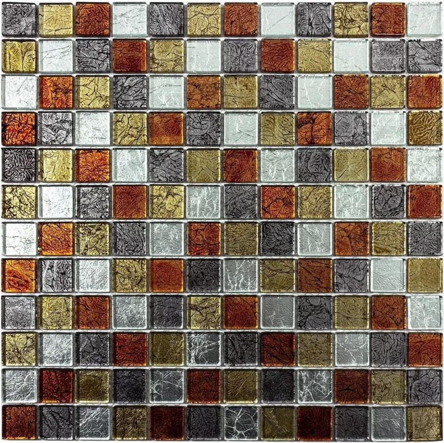 Les carreaux de mosaïque en verre Crystal Bonnie Structure dans les couleurs rouge, or et argent sont un choix élégant pour n'importe quelle pièce. Ils peuvent être utilisés comme carreaux d'accent ou décoratifs dans différents domaines pour créer une atmosphère élégante et luxueuse.