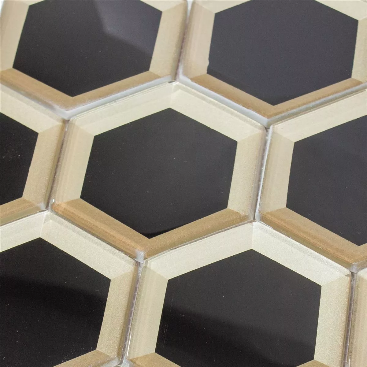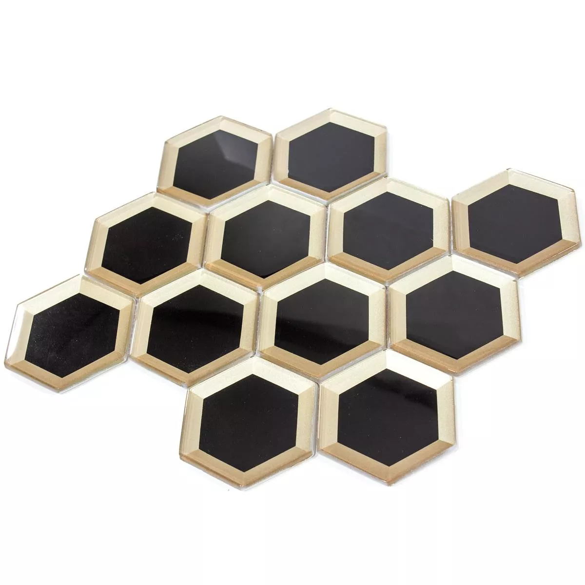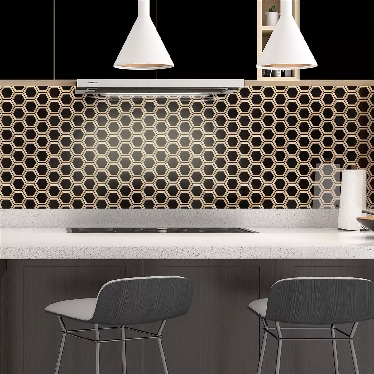 Mosaïque En Verre Arnold Hexagone Noir Or