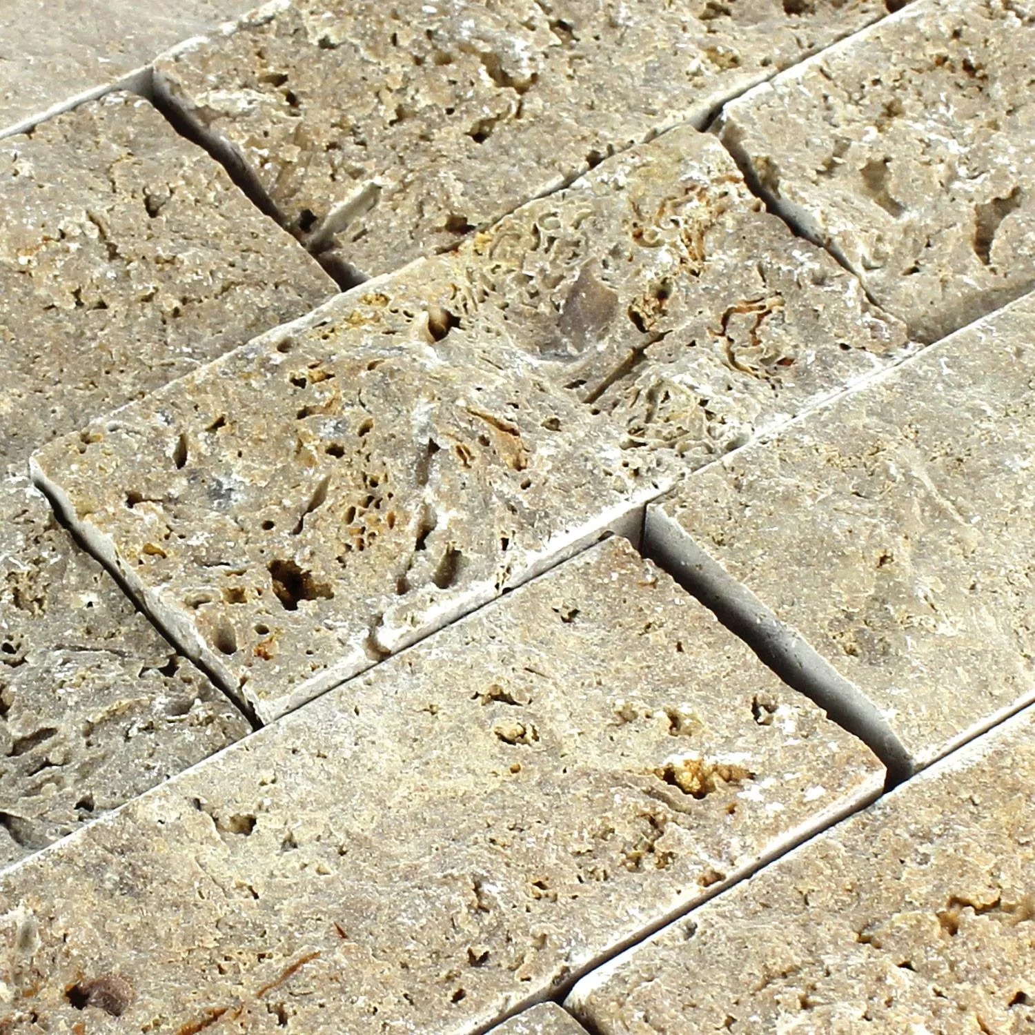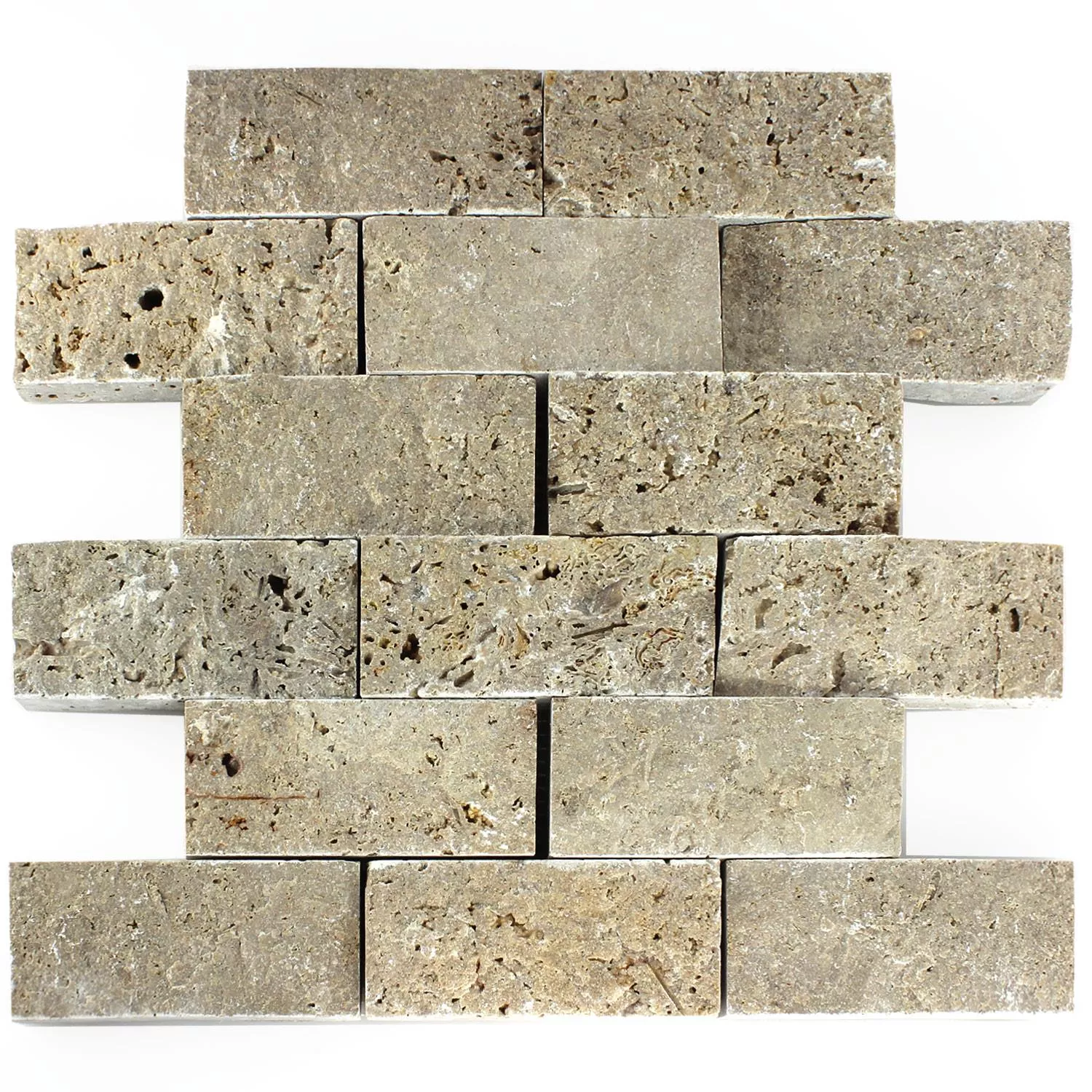 Comme tous les carreaux de pierre naturelle, les carreaux de mosaïque sont faciles à entretenir, de sorte que même des années plus tard, ils ont toujours l'air qu'ils avaient au premier jour. Le carrelage en pierre naturelle est donc l'alternative parfaite à tous les papiers peints et boiseries. Ils sont un bon investissement dans n'importe quelle maison. Les beaux carreaux de mosaïque sont souvent posés dans les nouveaux bâtiments. Mais ils peuvent également être installés ultérieurement dans tous les bâtiments plus anciens en peu de temps, de sorte que ces carreaux de pierre naturelle assurent également une atmosphère de vie agréable dans l'ancien bâtiment. Le modèle de dalles en pierre naturelle Sumba Noce Brick peut également être combiné de manière optimale avec les autres nuances de couleurs de la série Brick, de sorte que les sous-zones puissent être subtilement séparées les unes des autres, en particulier dans les grandes pièces. Les carreaux de travertin présentent un style de vie intemporel et élégant sur chaque mur, auquel s'intègrent parfaitement les meubles design, les meubles de maison de campagne et de nombreux autres meubles.