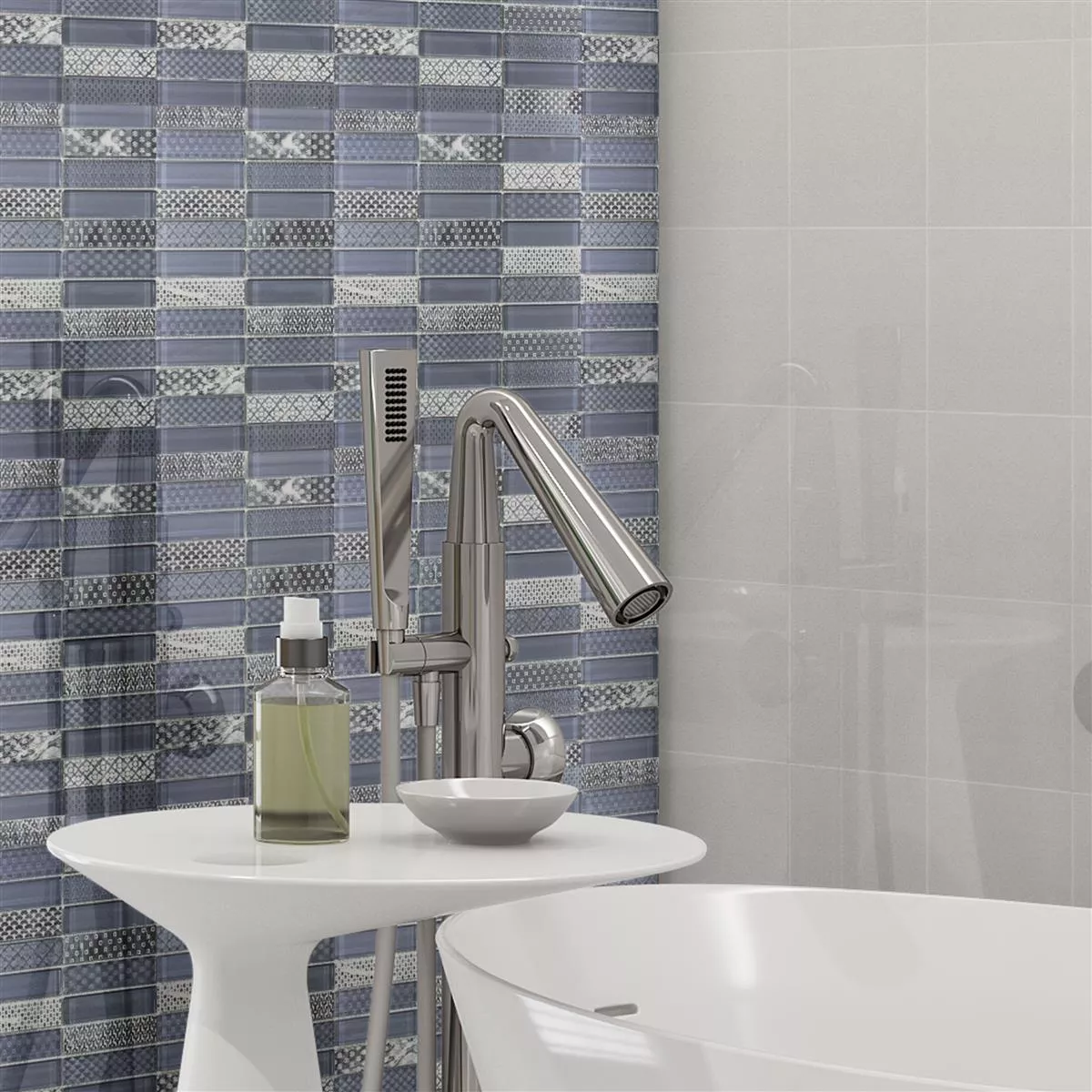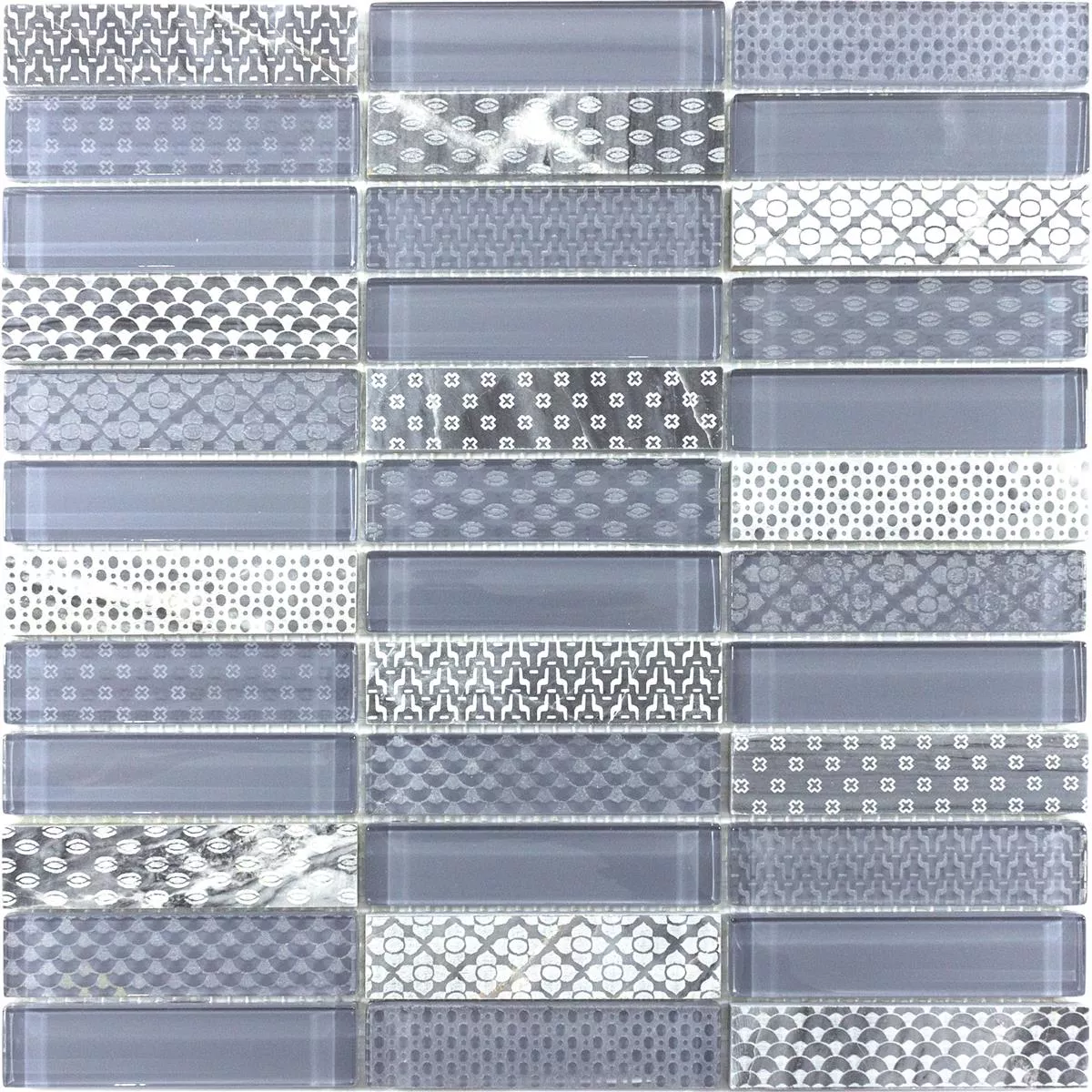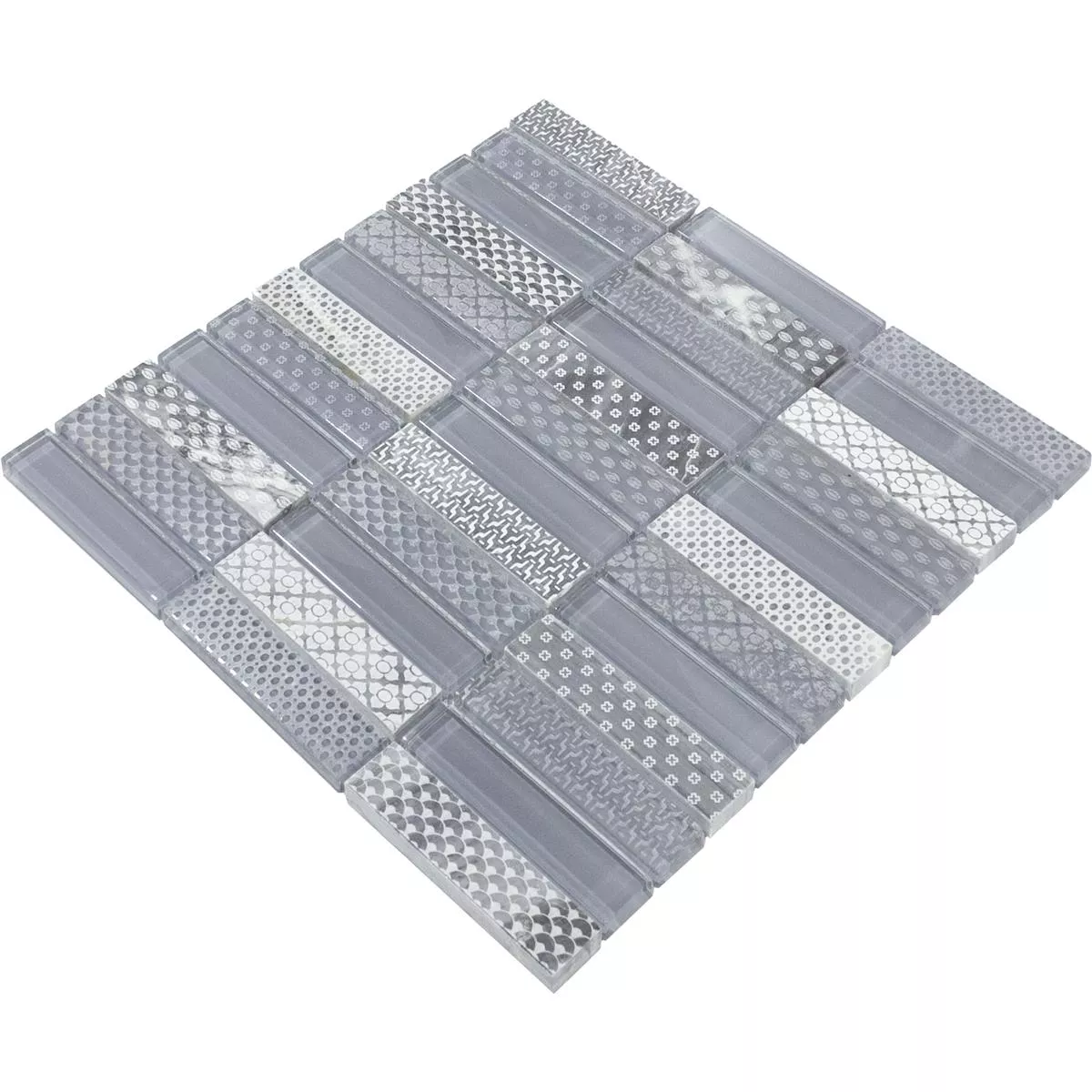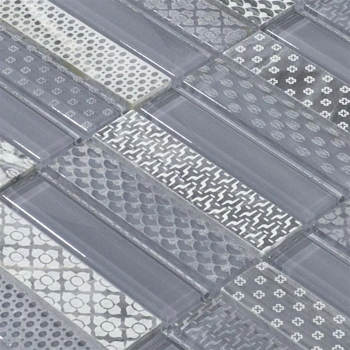 Carreaux de mosaïque en pierre naturelle en verre Celestiana Ornament Brick Mix - esthétique en gris.