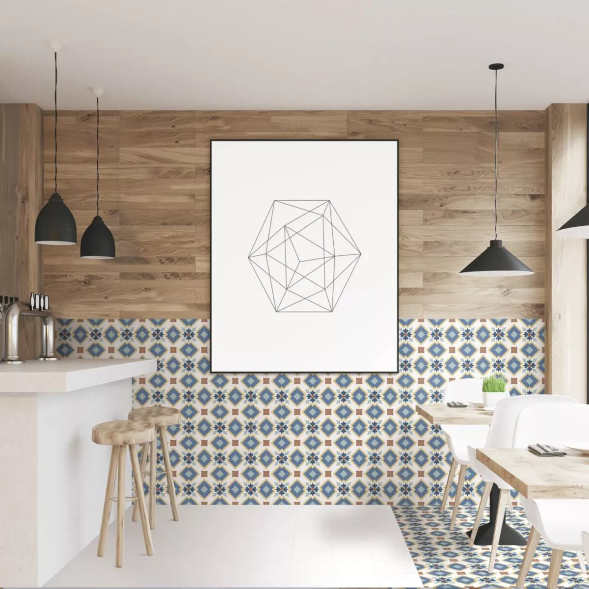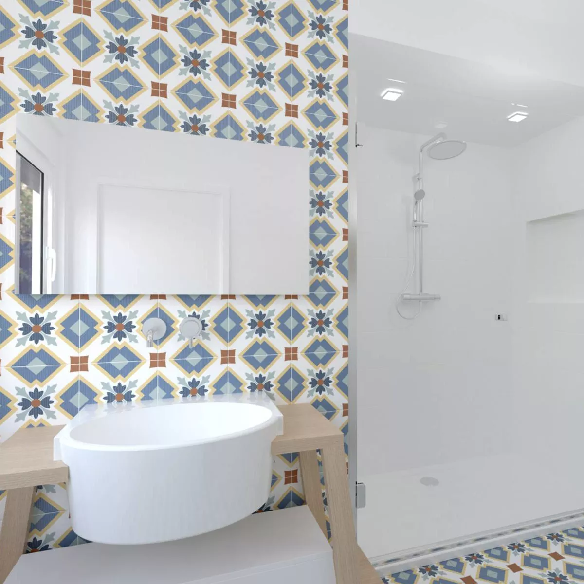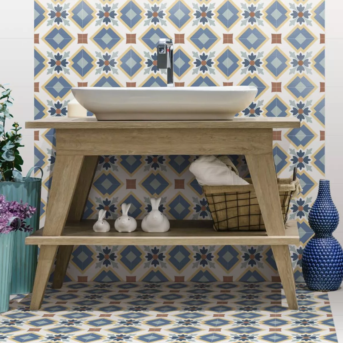 Met zijn diverse kleuren – blauw, geel, bruin en wit – past de Bucharest porseleinen vloertegel bij elk interieur en creëert een harmonieuze sfeer. Bovendien is hij geschikt voor vloerverwarming, wat extra comfort biedt.
