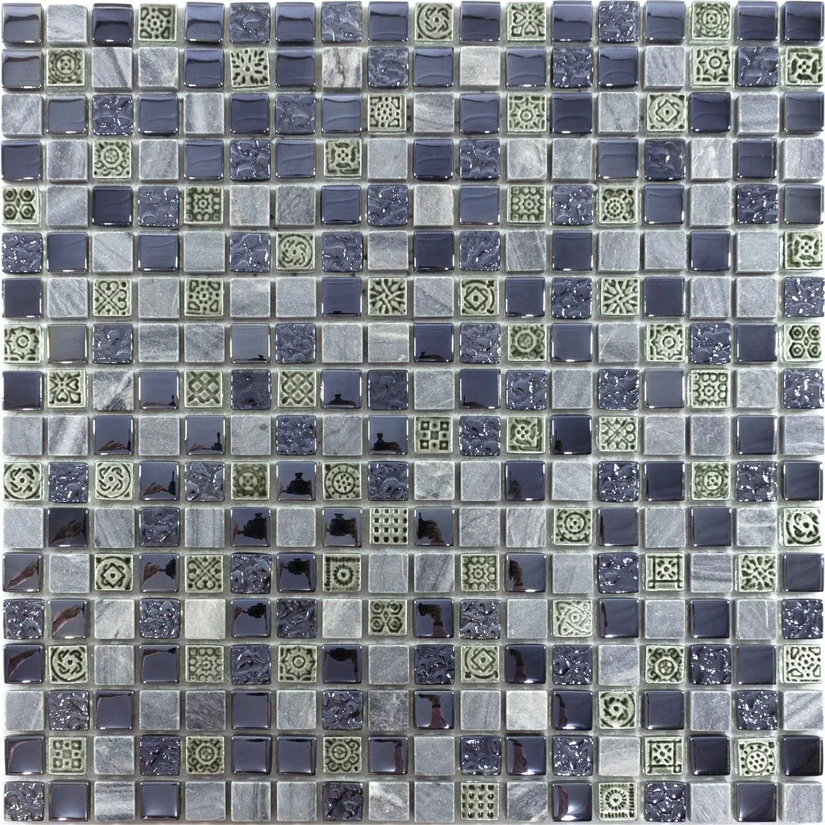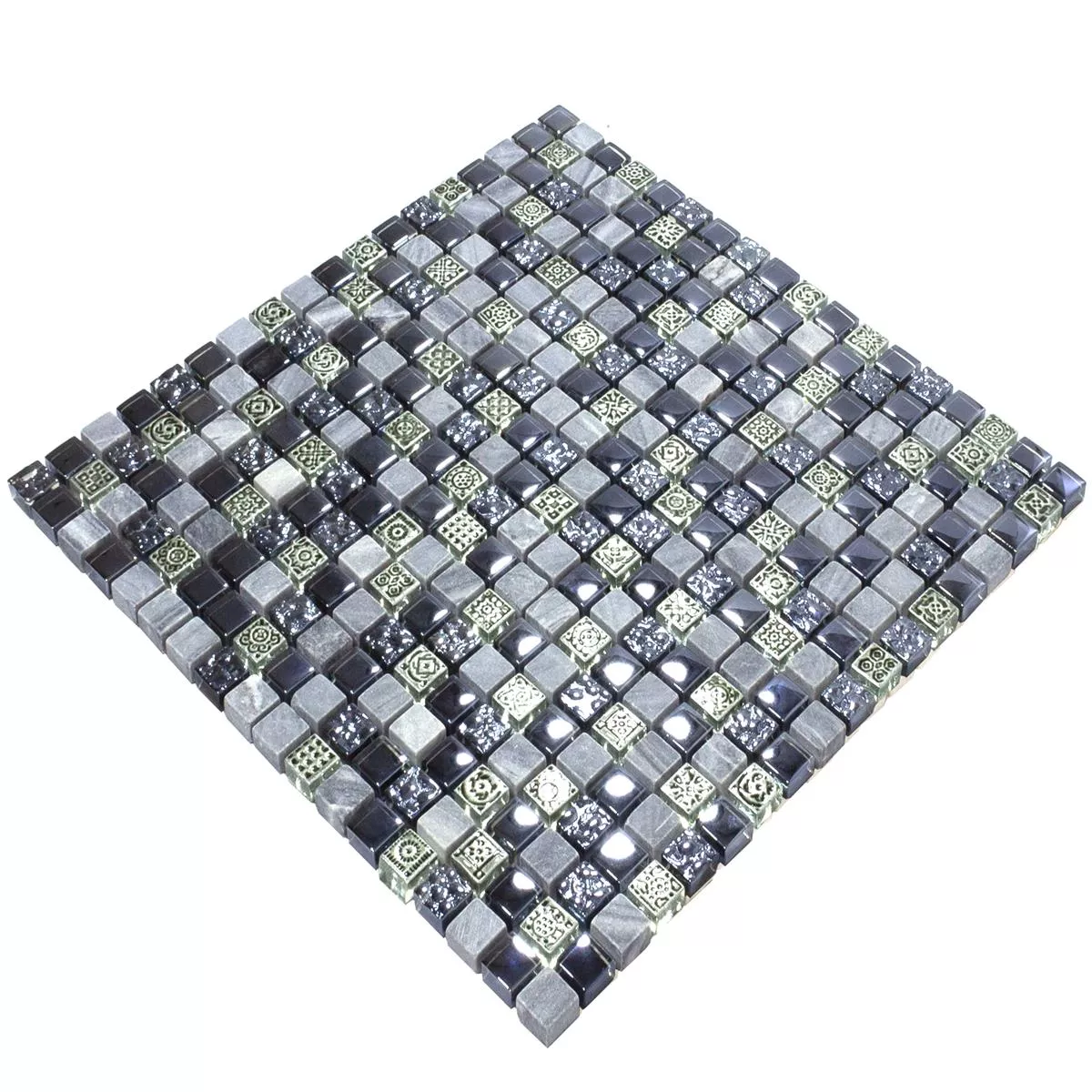 Glas Marmer Mozaïektegel Champion Zwart Grijs Mix