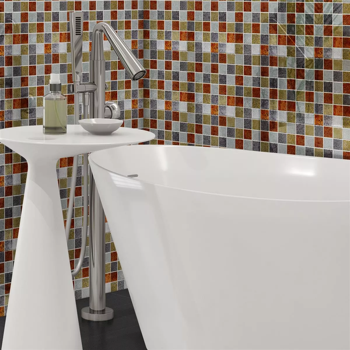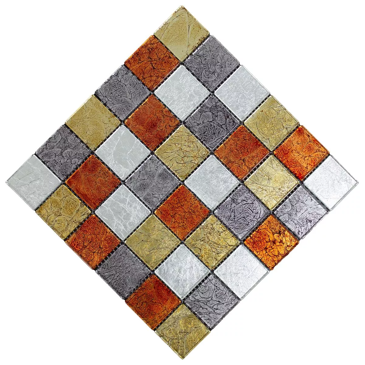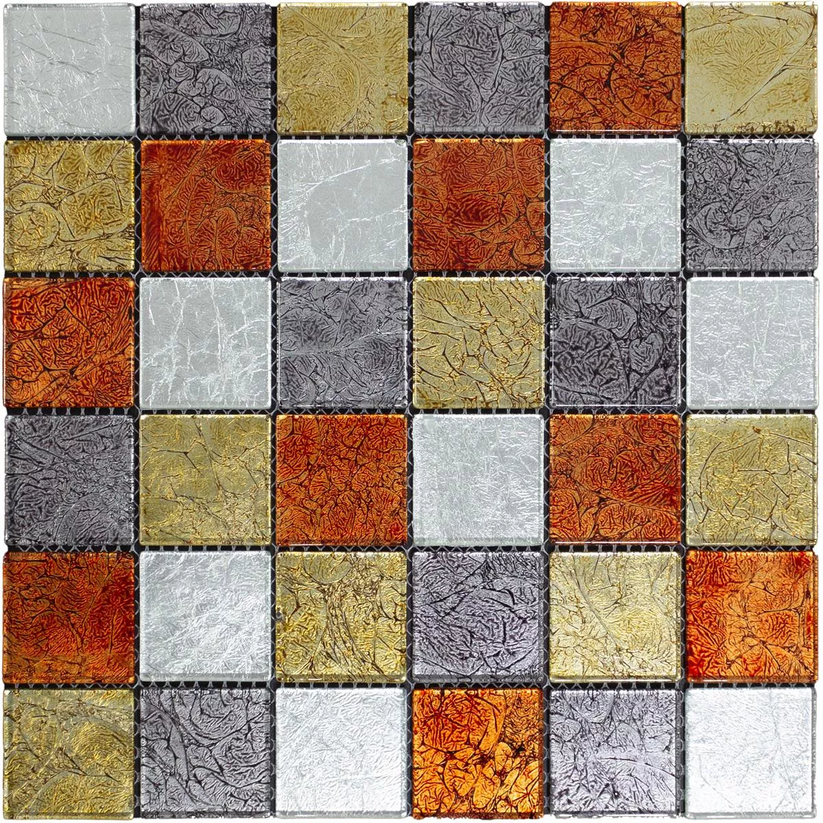 Glasmozaïek Tegels Curlew Rood Bruin Zilver Q48 4mm