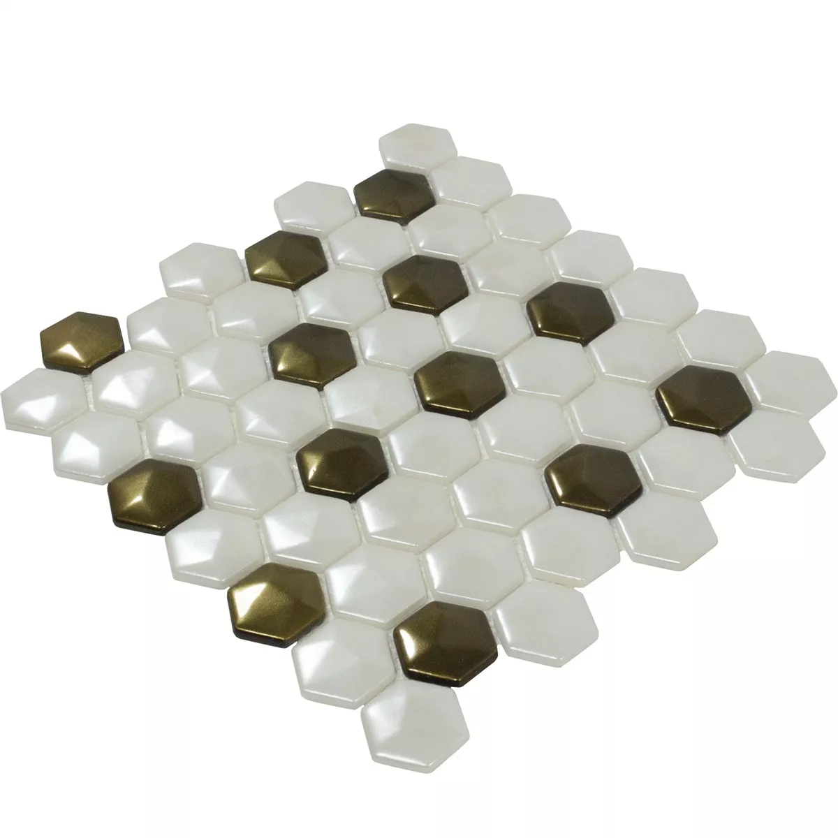 Glasmozaïek Tegels Las Vegas Hexagon 3D Wit Goud