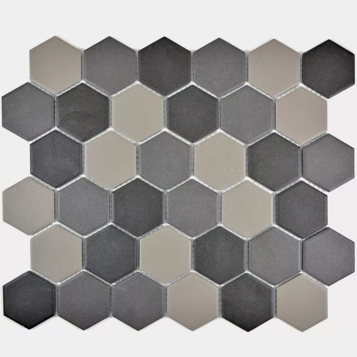 Keramiek Mozaïektegel Hexagon Bern Grijs Zwart