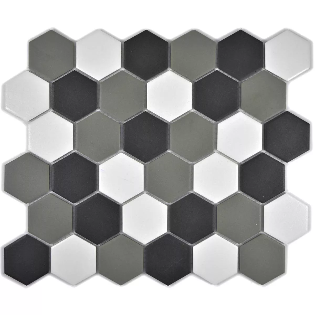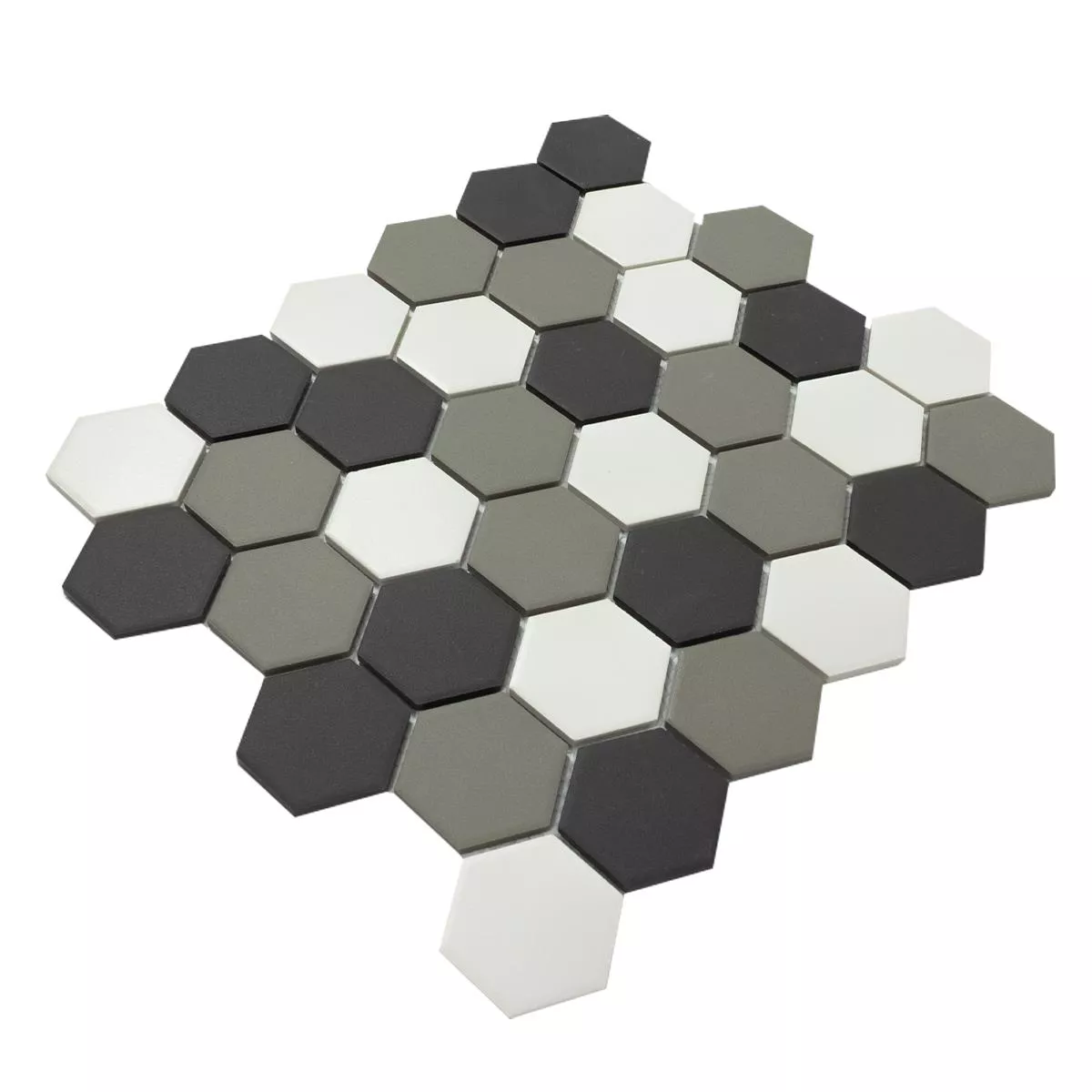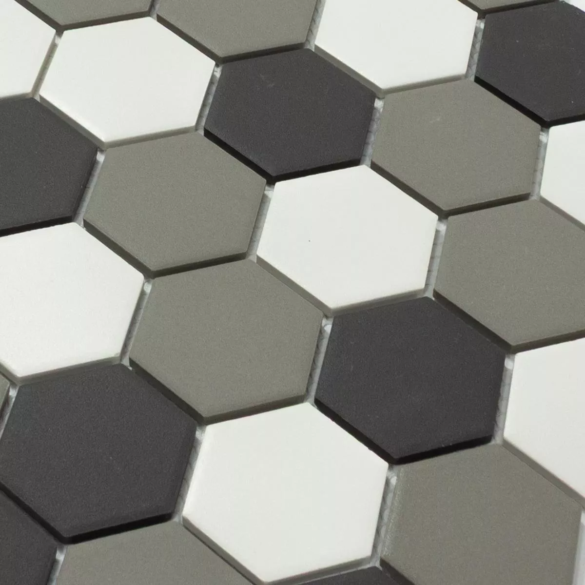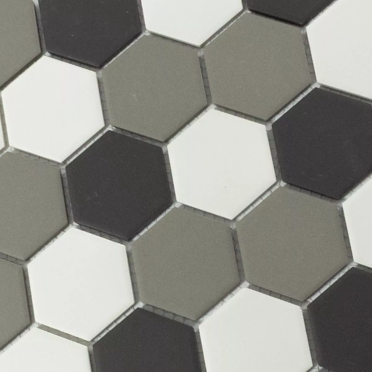 Keramiek Mozaïektegel Hexagon Bern Zwart Wit