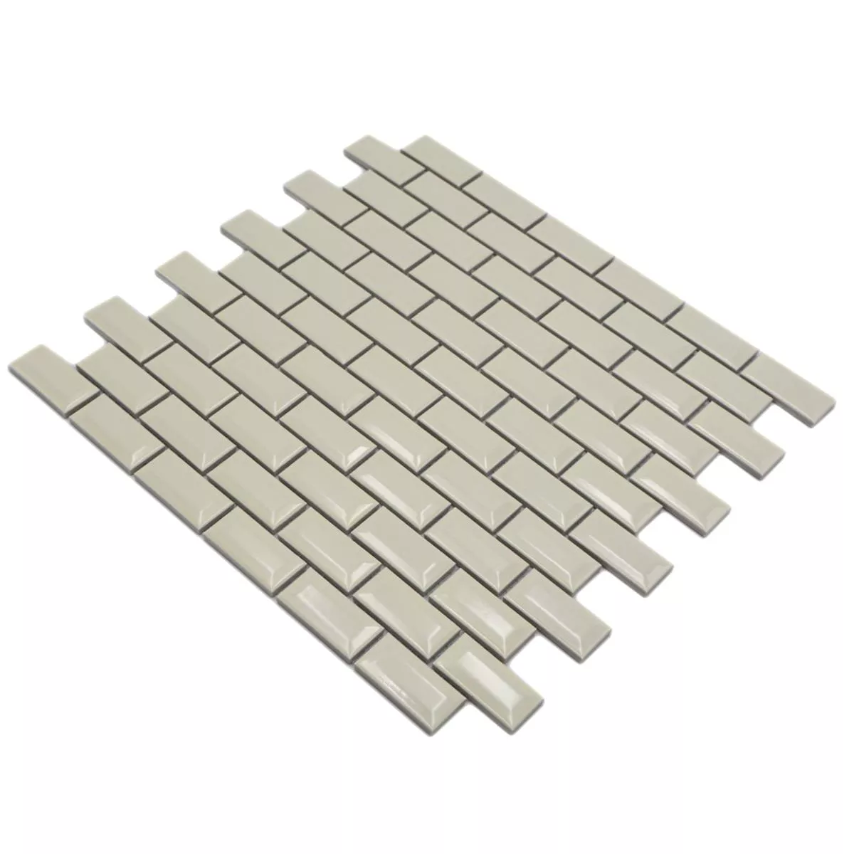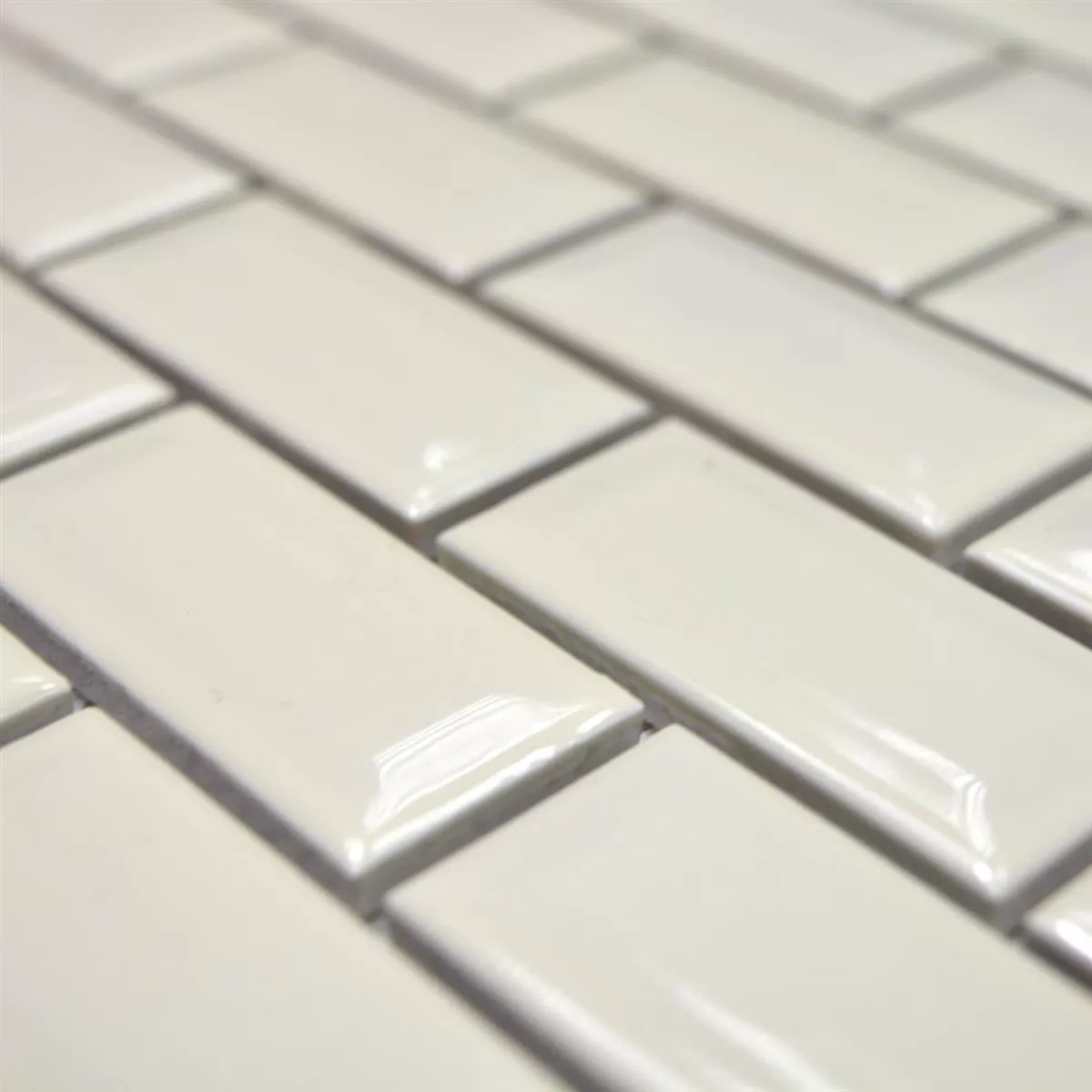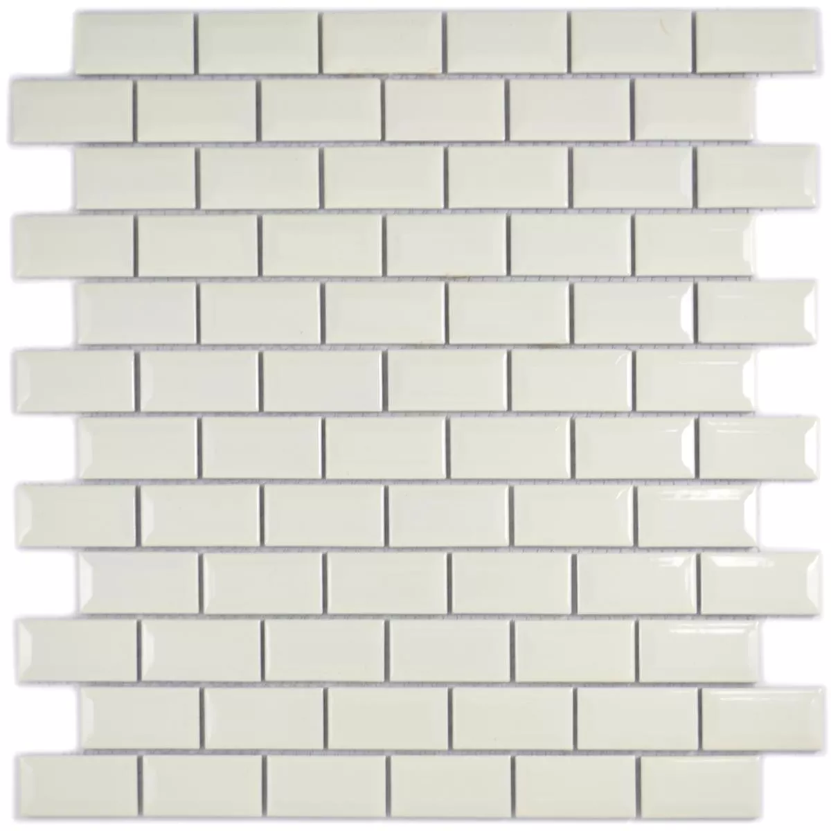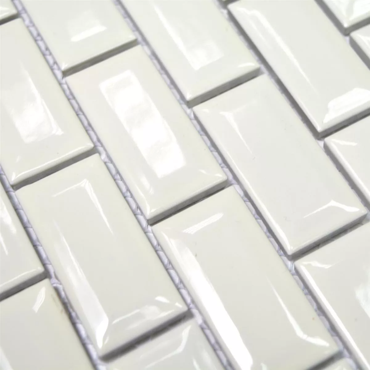 Keramik Metro Mosaikfliesen Baltimore Facette Elfenbein Glänzend