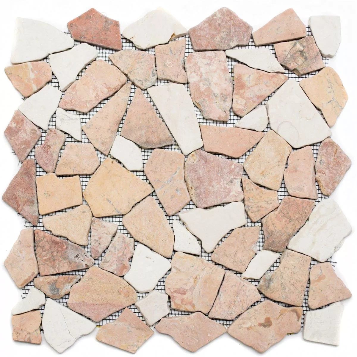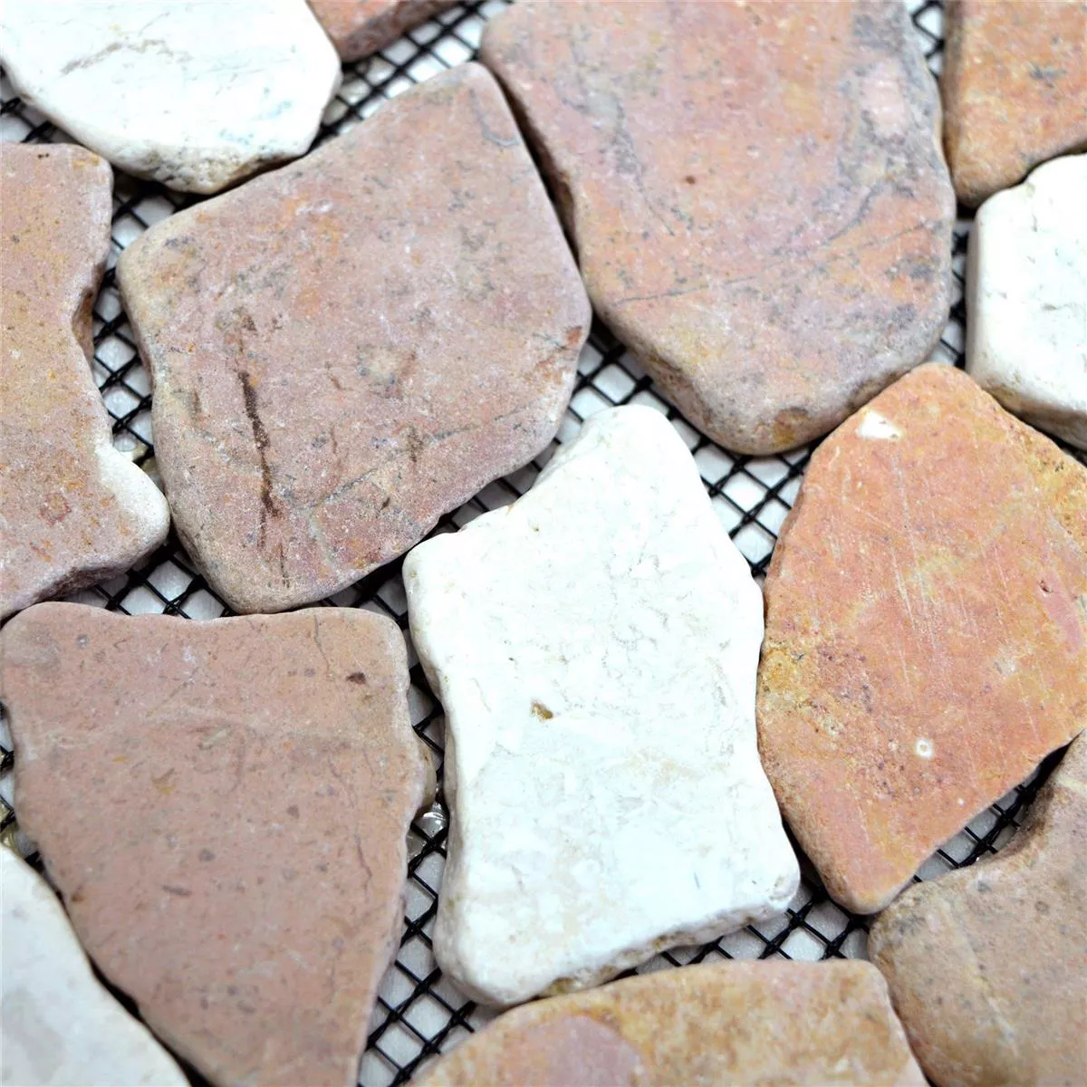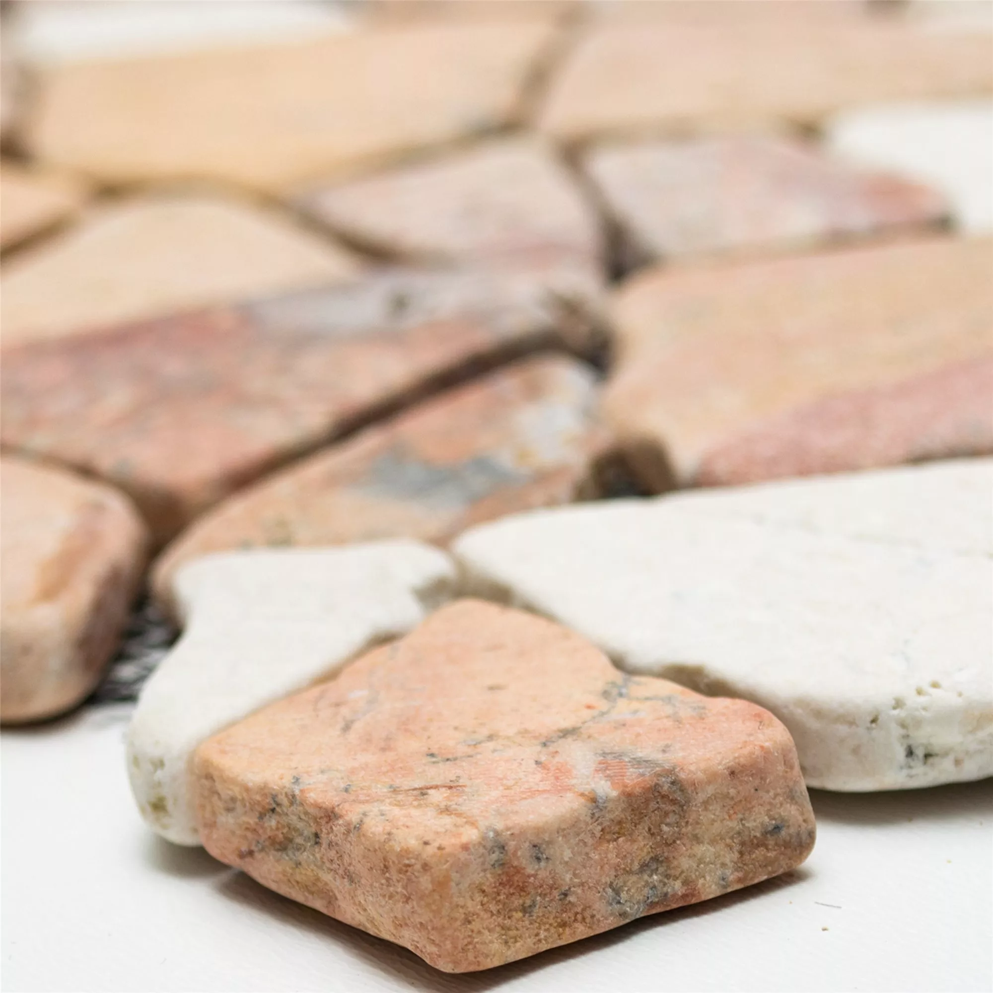 Ontdek de luxueuze verscheidenheid van het Poseidon-marmergroevemozaïek in de elegante kleuren rood, crème en rosso. Elke mat van deze prachtige mozaïektegels heeft een oppervlakte van 0,093 m² en is perfect voor het ontwerpen van muren en vloeren, zowel binnen als buiten. Met een dikte van 7 mm en variabele steengroottes van 15 tot 69 mm zet dit mozaïek indrukwekkende accenten in uw kamer.