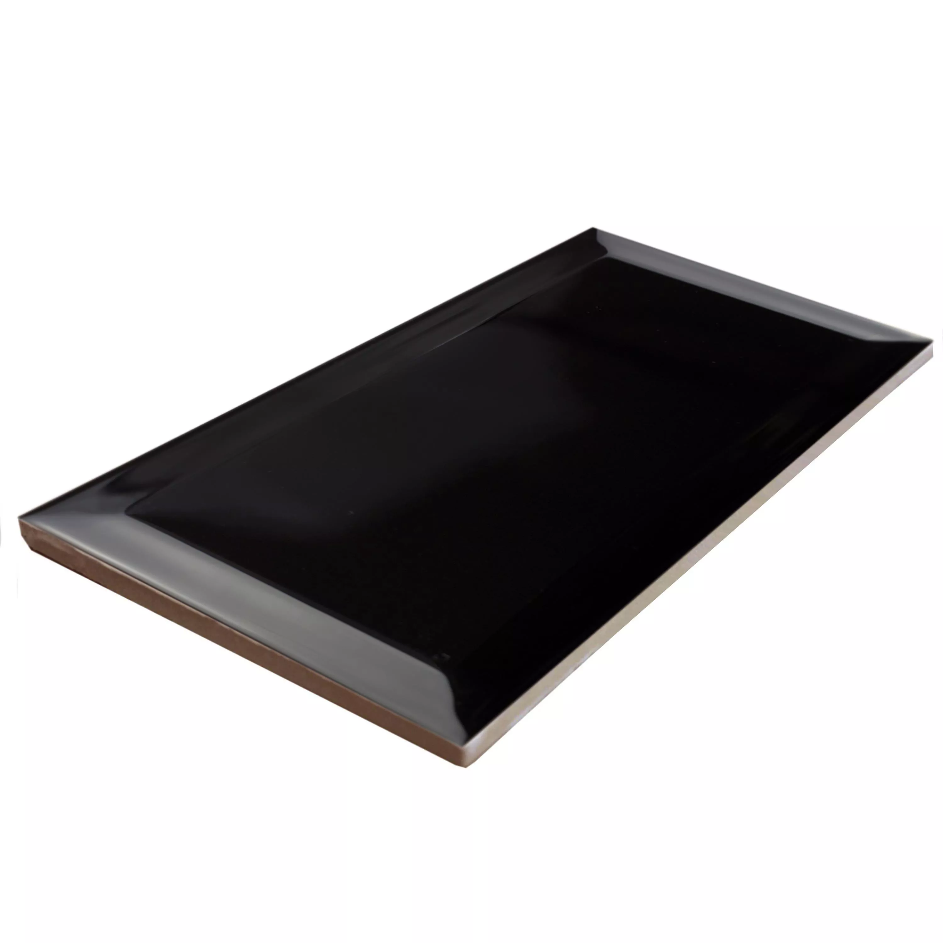 Metro Wandtegels Brussel Met Facet 10x20x0,7cm Negro Mat