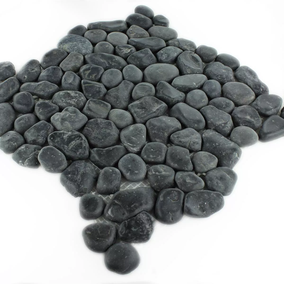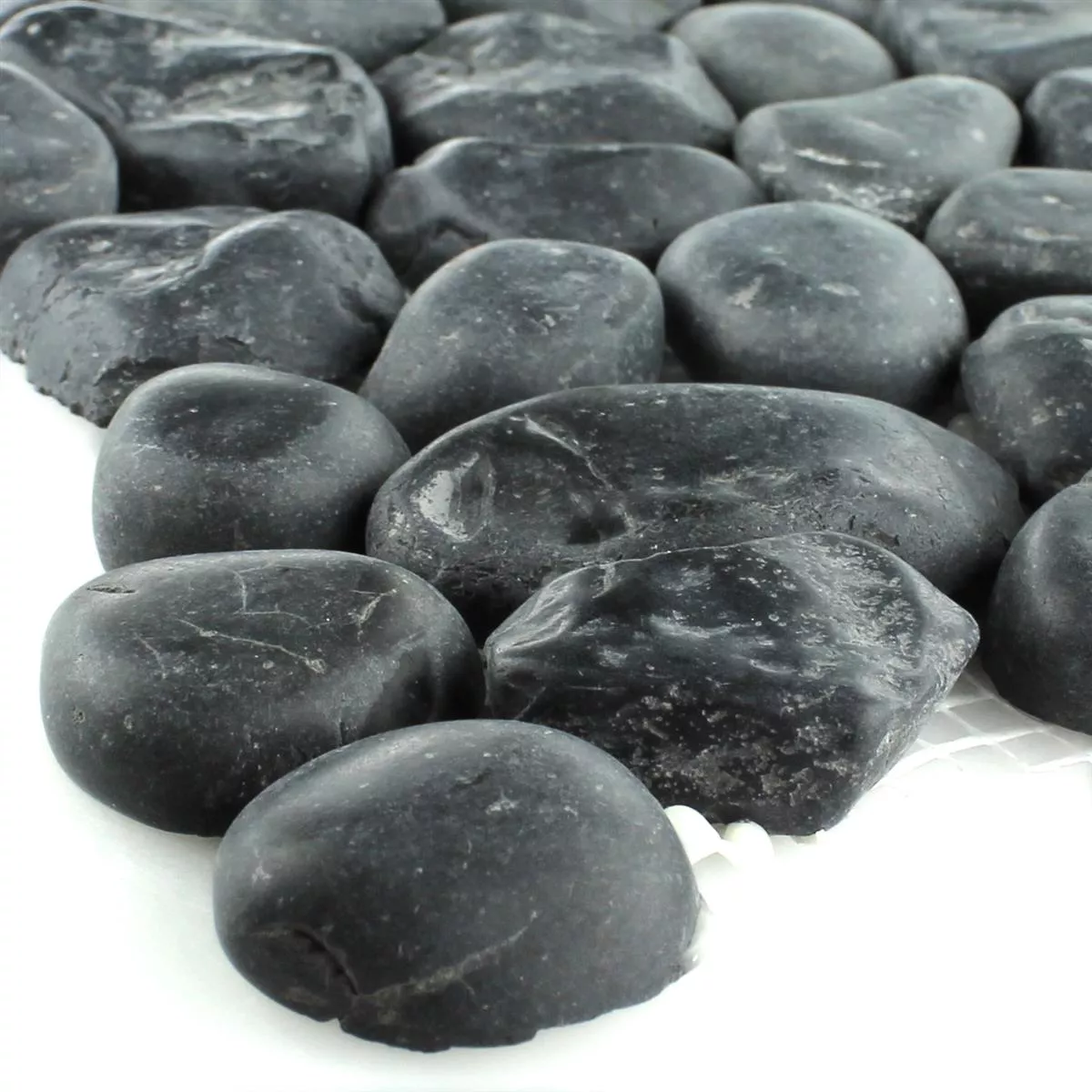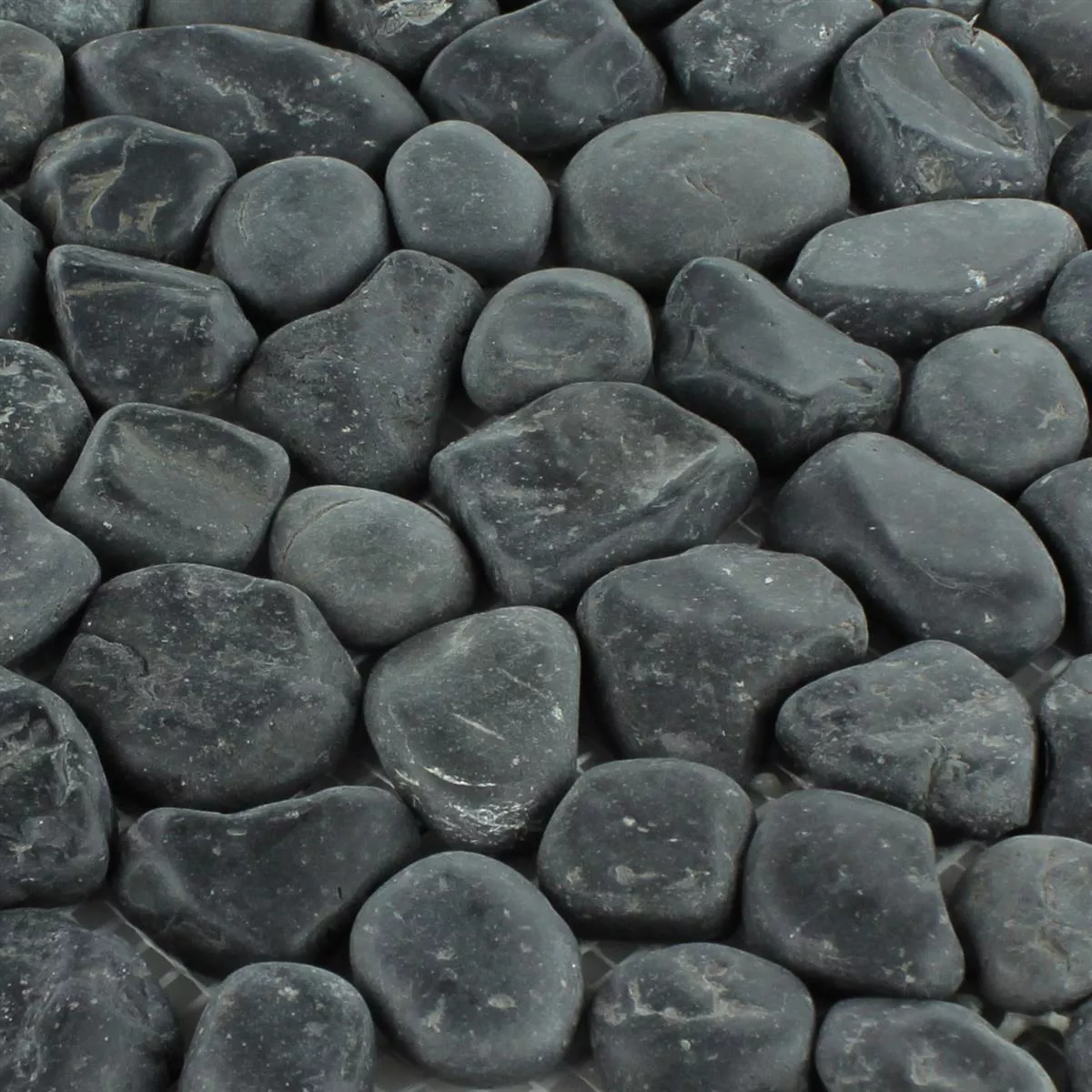 De mozaïektegels zijn verkrijgbaar in twee varianten. Enerzijds is er de variant in antraciet en anderzijds de variant in de steenmix van wit, beige en roze. De matten worden gevoegd nadat ze zijn verlijmd, waardoor een ruw oppervlak ontstaat. Ze zijn bijzonder geschikt als wandbekleding of als vloerbekleding. Naast binnengebruik zijn de rivierkiezelmozaïektegels ook geschikt voor buiten of natte ruimtes. Het verzorgen van de rivierkiezels is heel eenvoudig. Omdat het een natuurlijk materiaal is, kunnen in de handel verkrijgbare reinigingsmiddelen worden gebruikt. Ze zijn absoluut onderhoudsvriendelijk en duurzaam.