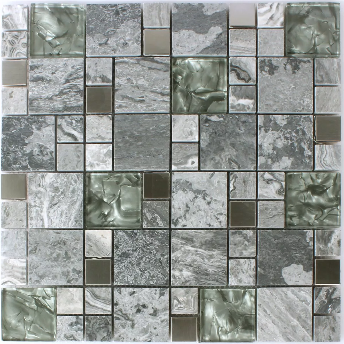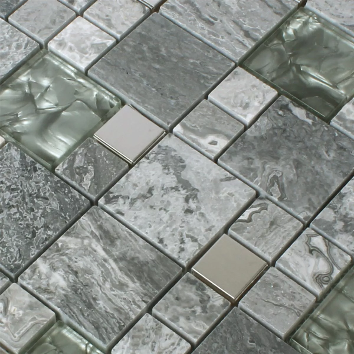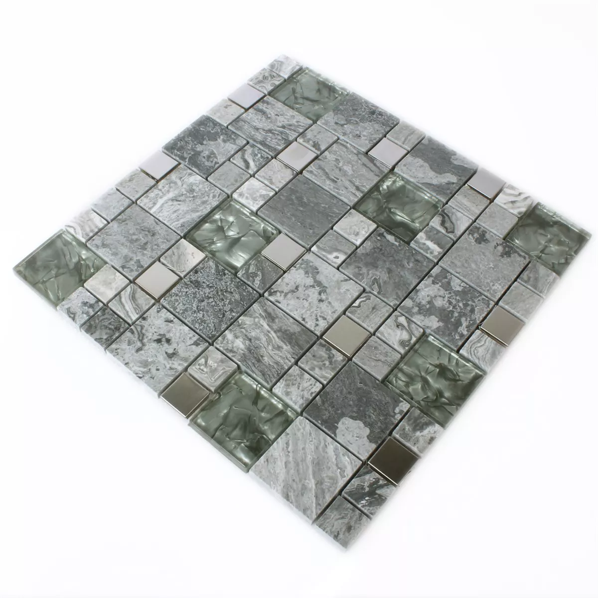 Mozaïektegel Metaal Glas Natuursteen Mix Grijs Zilver