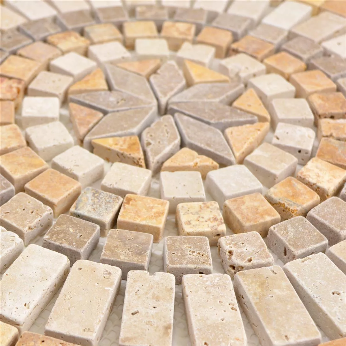 De natuurstenen tegels zijn gemaakt van travertijn en kunnen op veel manieren gebruikt worden. Ze zijn niet alleen geschikt voor binnen, maar ook voor buiten. Ze zijn slipvast en vorstbestendig. Met schuurniveau 4 kan de tegelvloer dagelijks worden gebruikt. Omdat de mozaïektegel ook in natte ruimtes kan worden gebruikt, zijn ze de perfecte decoratie voor het zwembad.